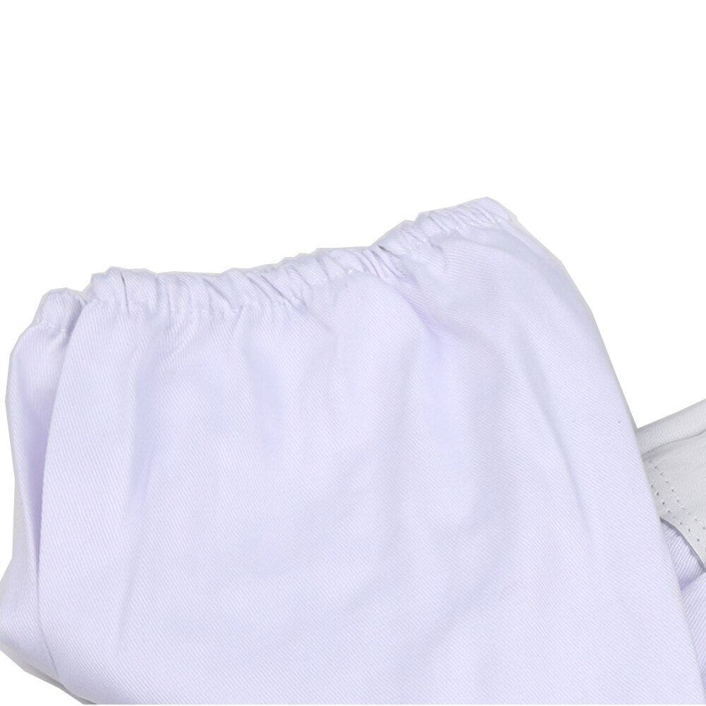 Cotton sleeves provide total arm coverage with elastic closure.