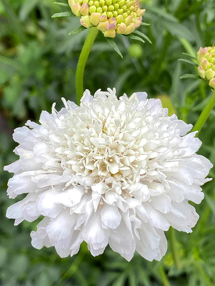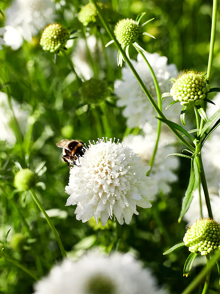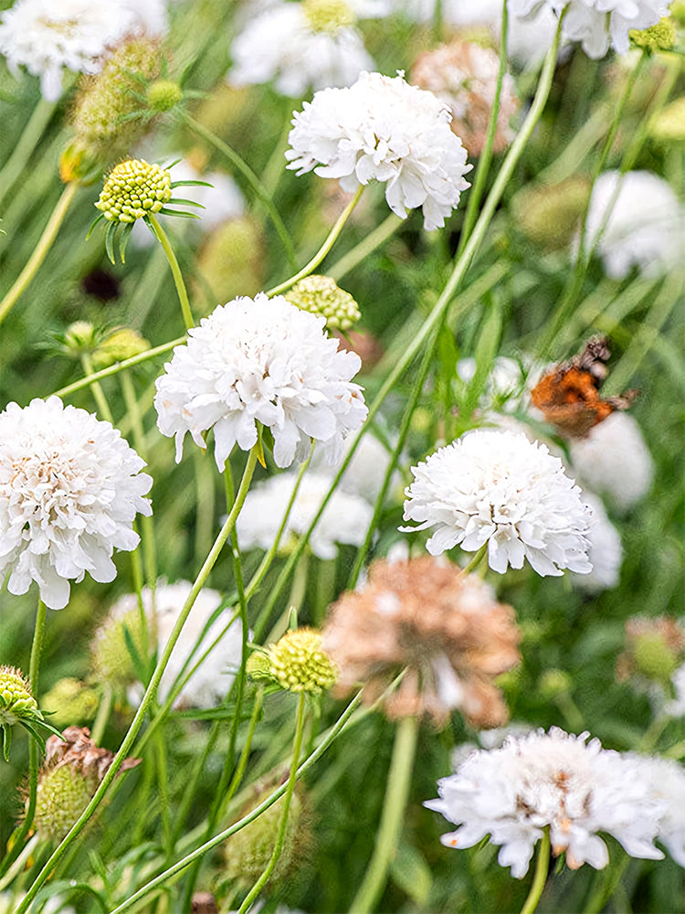 🌱 Pollinator Magnet: Scabiosa Atropurpurea, white, is highly attractive to bees, beneficial insects, birds, butterflies/moths, and other pollinators. Its nectar-rich flowers and seeds are particularly beneficial for supporting local ecosystems.