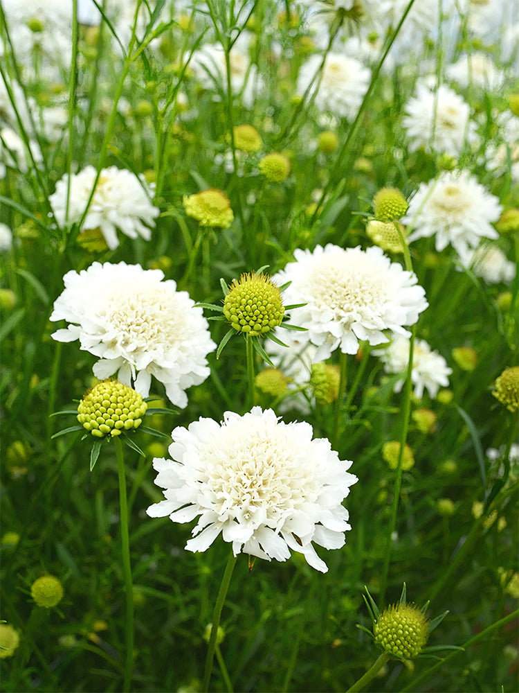 🌱 Origin and Common Names: Bellfarm® Scabiosa Atropurpurea, white, also known as mourningbride, mournful widow, pincushion flower, or sweet scabious, originates from a flower cultivation base in Gansu, China.