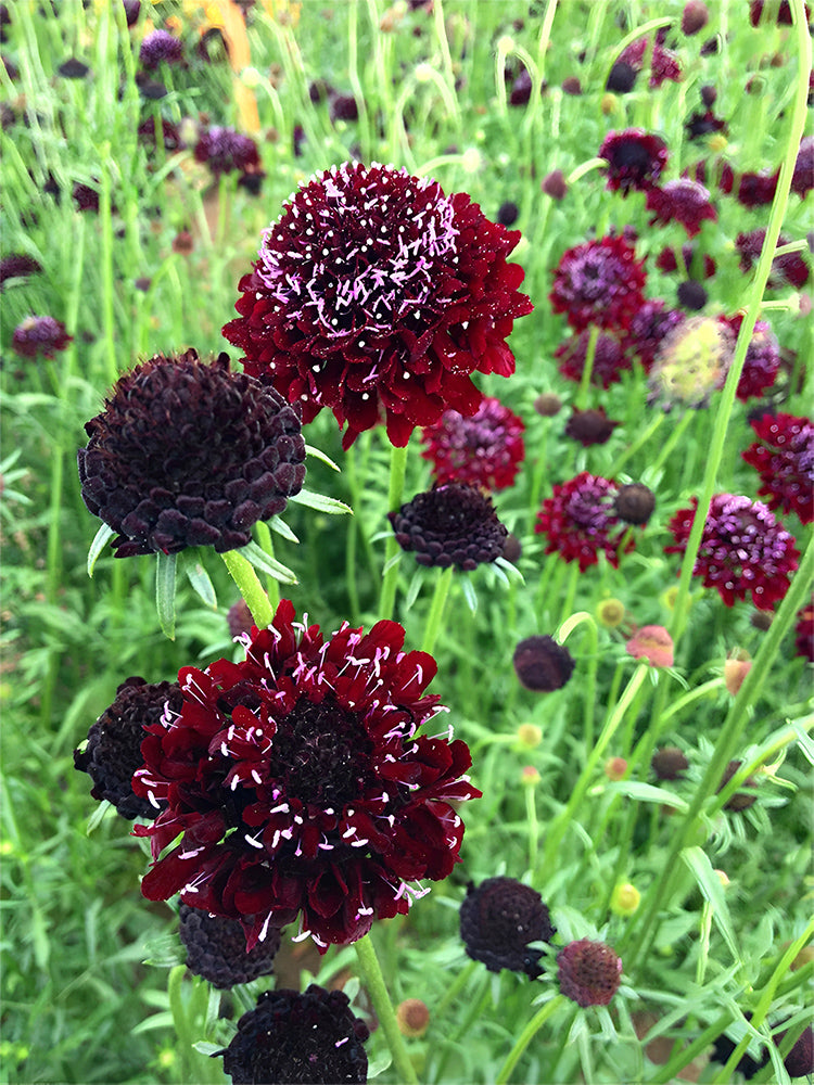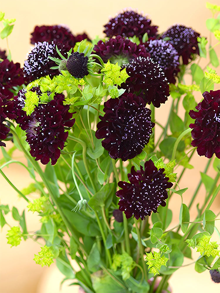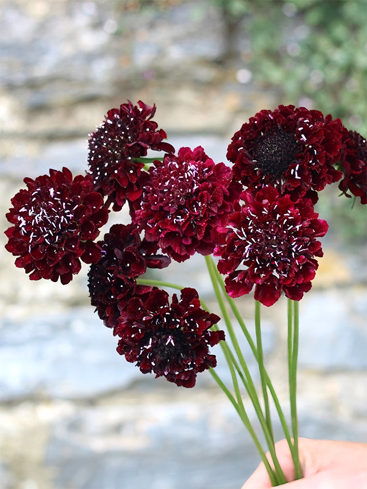 Discover Bellfarm® Scabiosa 'Black Knight' Seeds, featuring mesmerizing near-black double pin cushion flower heads, perfect for gardens and cut flower arrangements. With a compact height of around 70cm, they add depth to mixed borders and attract bees, birds, and butterflies, contributing to a thriving garden ecosystem. Experience nature's allure with Bellfarm® Scabiosa 'Black Knight' Seeds.