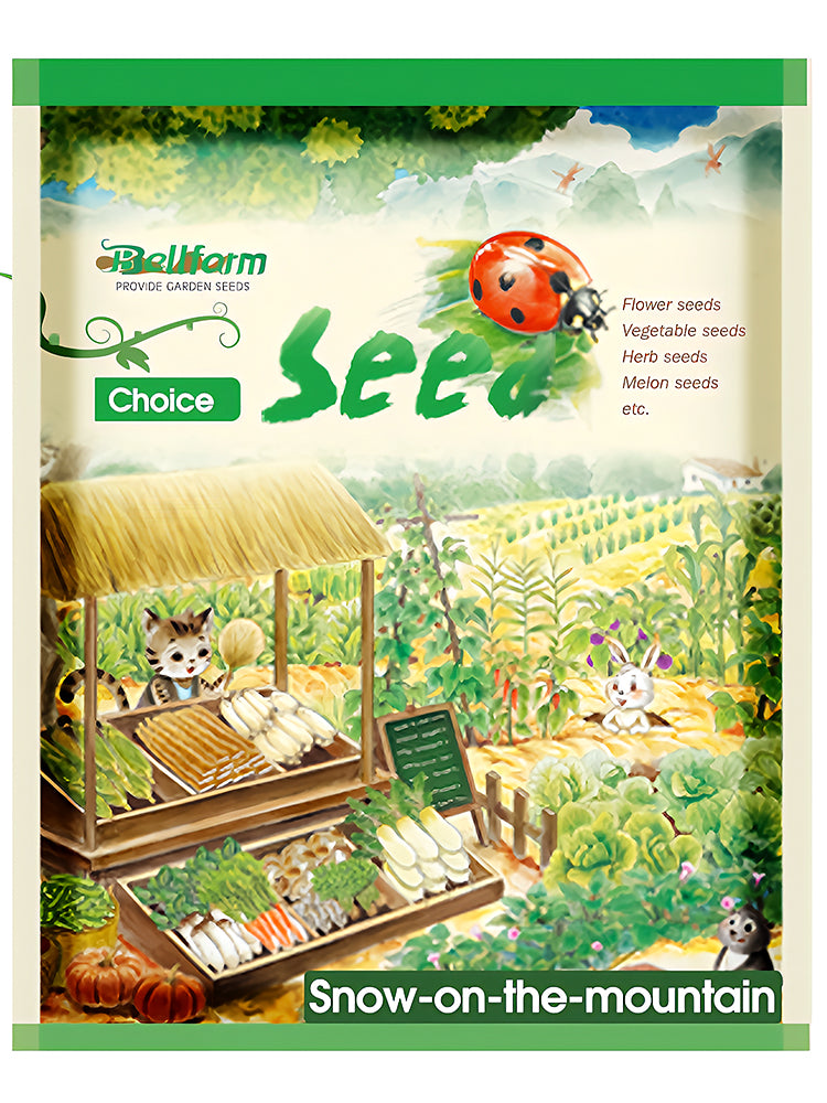 🌱 Planting Instructions: To plant Bellfarm® Snow-on-the-mountain Seeds, directly sow them in outdoor seedbeds or pots. Prepare the seedbed by leveling and watering it thoroughly. After the soil is slightly damp, sow the seeds evenly and cover them with fine soil. Use plastic film to retain warmth and moisture. Maintain a temperature around 20°C for germination, typically occurring within a week. Once seedlings emerge, remove the film, ensuring they receive light preferably before 9:30 am or after 3:30 pm. Thin out seedlings when most have developed three or more leaves, and transplant or pot them accordingly.