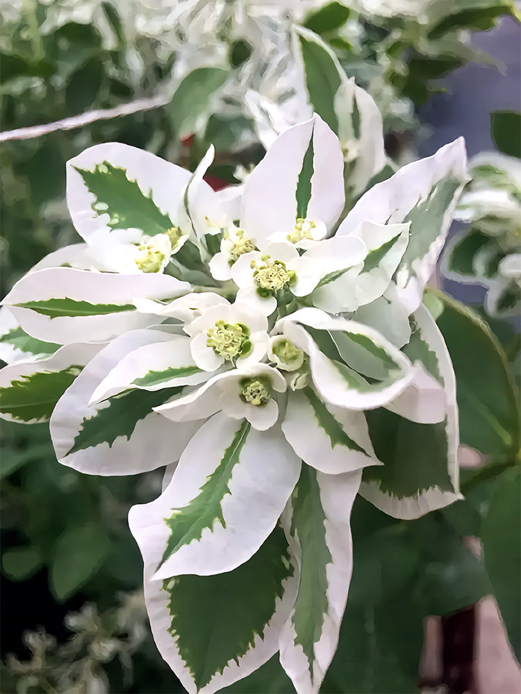 🌱 Flower Color: Greenish-yellow subtended by showy white bracts.