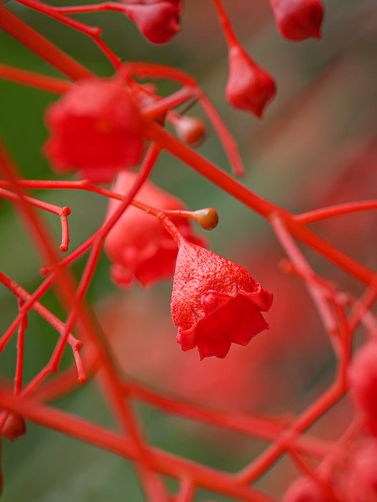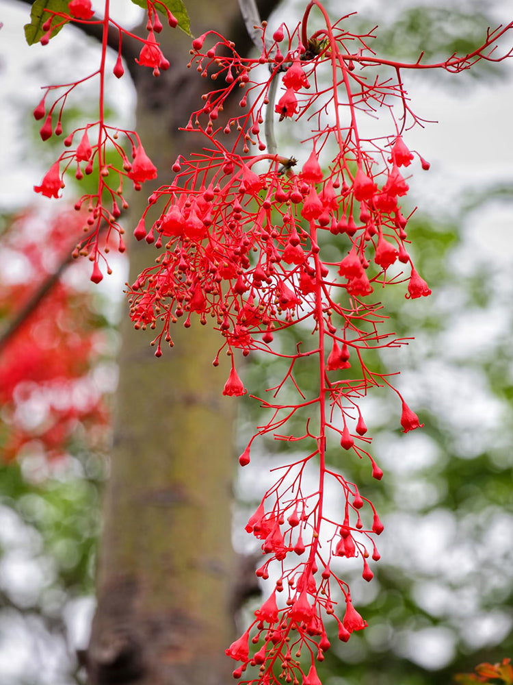• Flowers: Striking scarlet-red, bell-shaped clusters