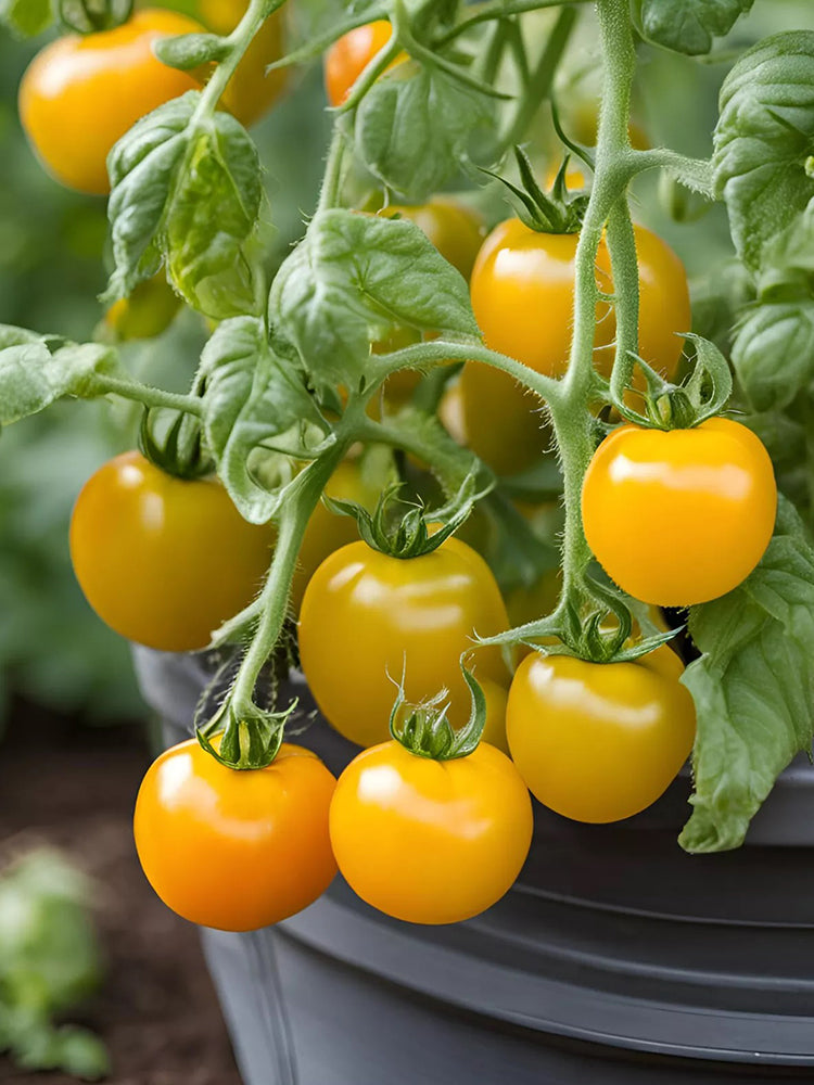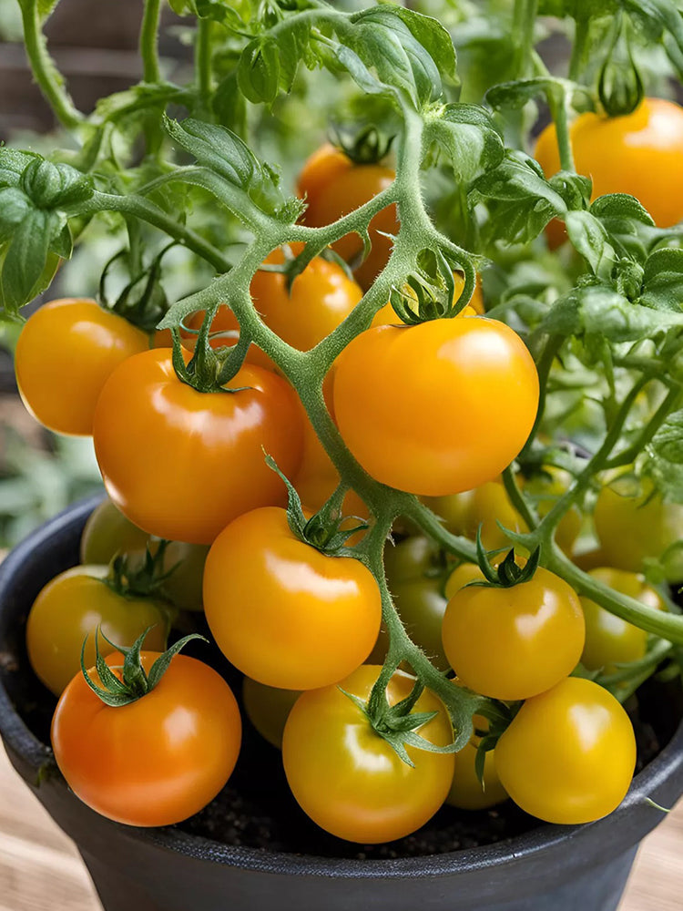 Bunny Hop is a compact, mini dwarf tomato variety that grows to a height of 40-60cm, perfect for small gardens or containers. Featuring fuzzy, grey-green leaves, it produces large to mid-sized, dark golden-yellow cherry tomatoes with a sweet, aromatic flavor. With a quick growing time of 65-70 days, Bunny Hop offers a delightful harvest of delicious, vibrant tomatoes. Ideal for home gardeners seeking both beauty and flavor.