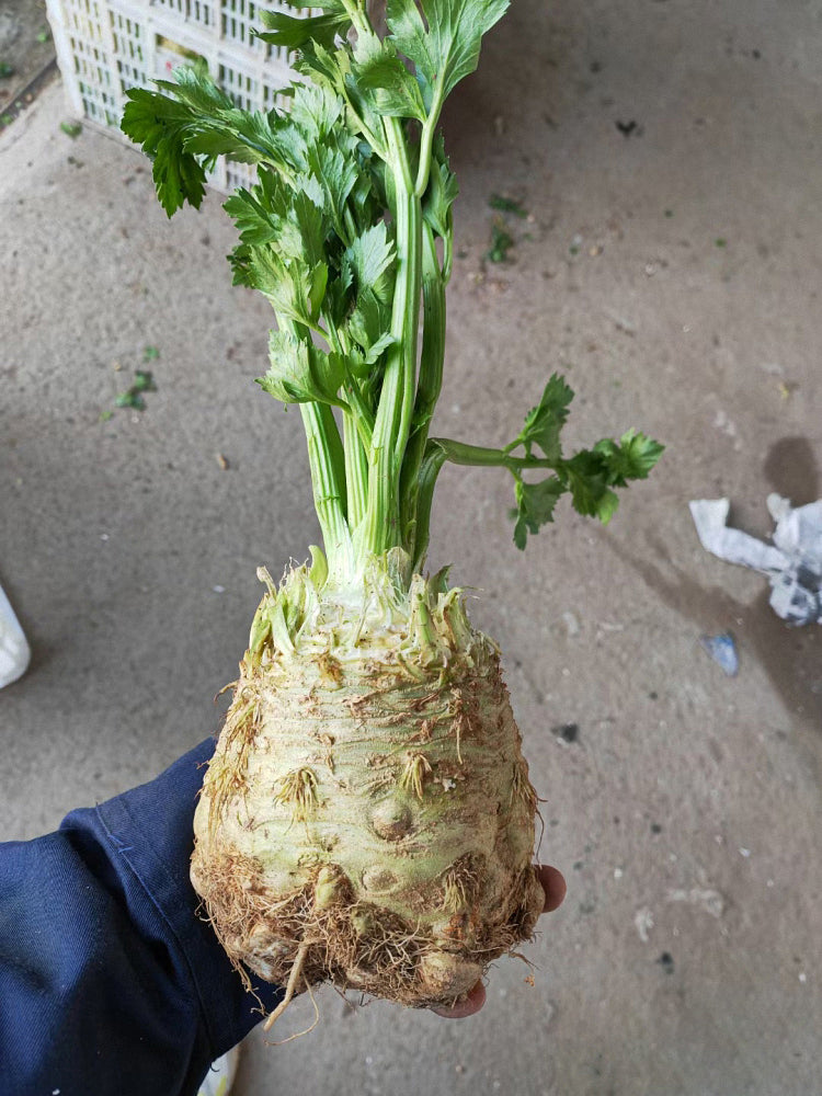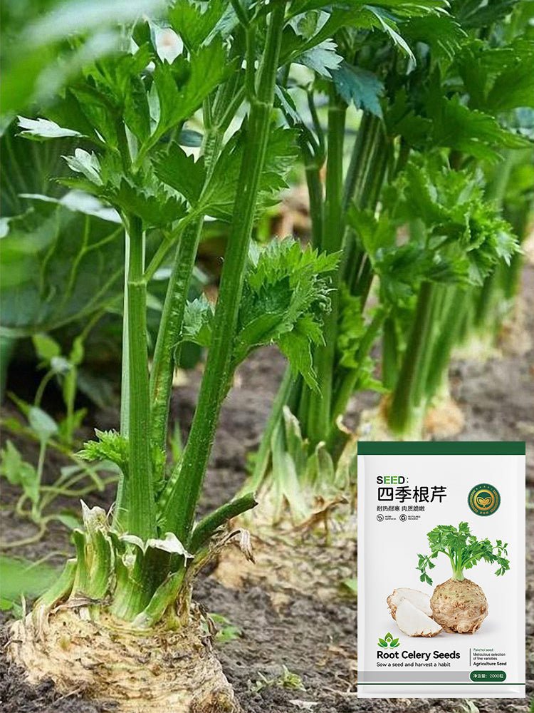 - Celeriac 'Giant Prague' (also called root celery, Apium graveolens var. rapaceum) is a biennial herbaceous variant of the Apium genus in the Apiaceae family. Its aboveground parts resemble celery, featuring dark green, pinnately divided leaves with serrated margins and green petioles. The underground swollen taproot is spherical and yellow-brown, with individual bulbs weighing up to 200 grams.