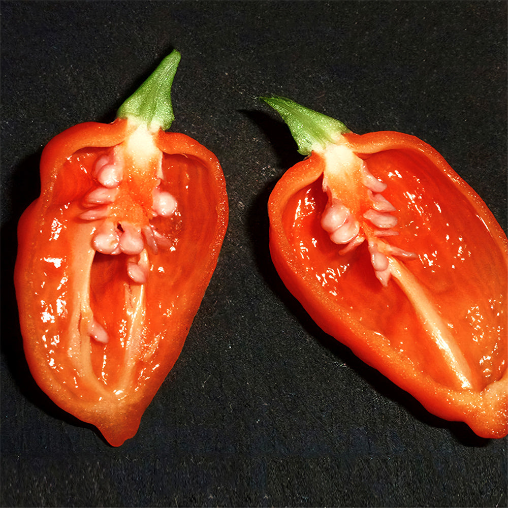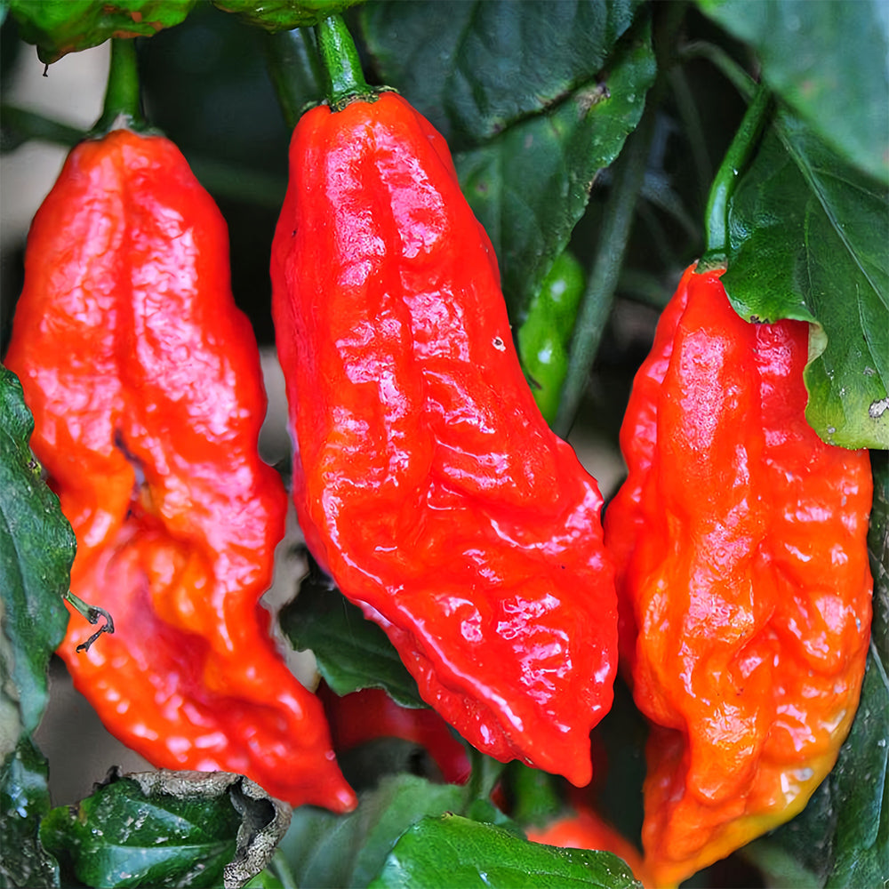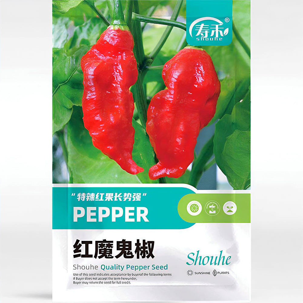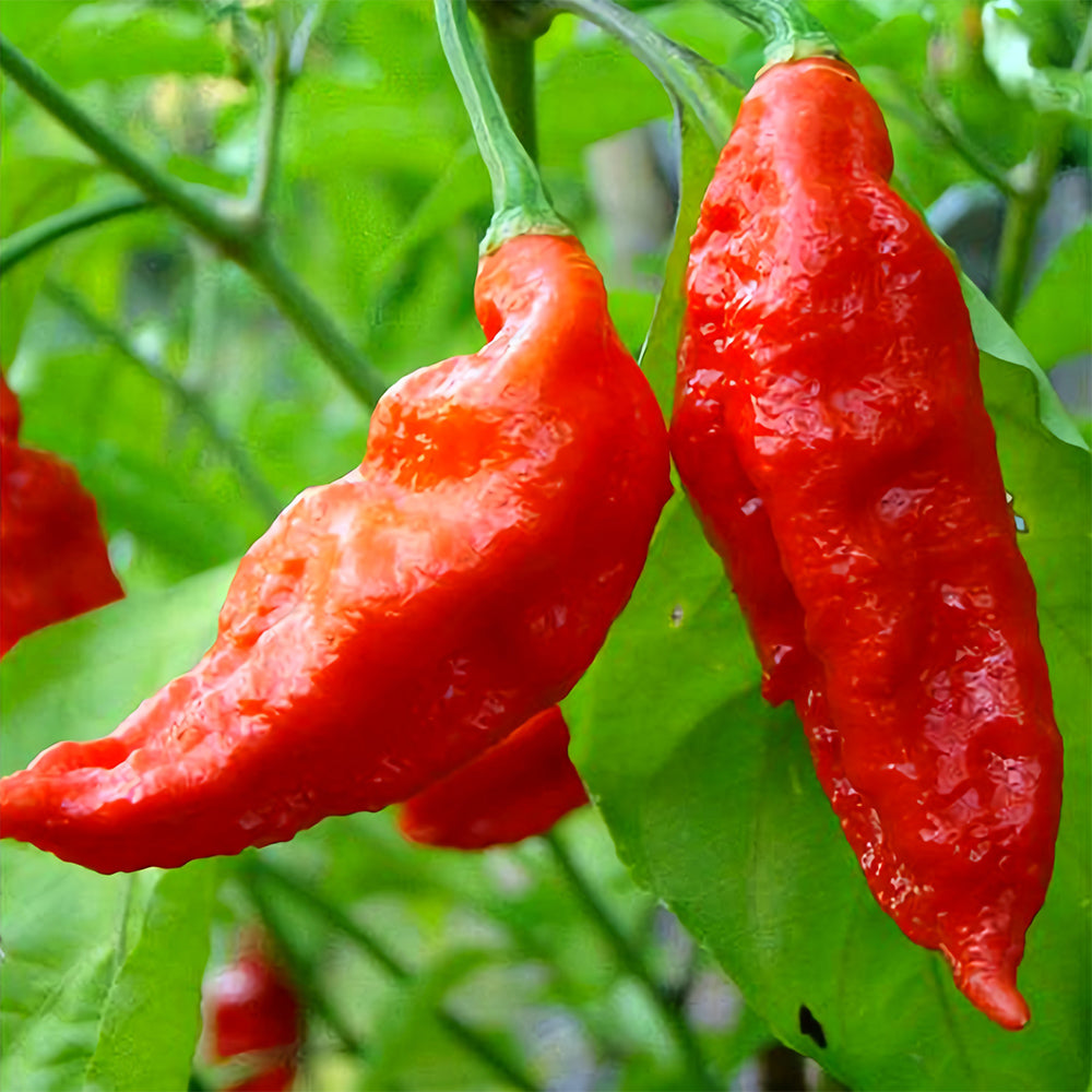 🌱 Introducing our Chili Devils Tongue Red Hot Pepper Seeds. This variety boasts fruits measuring around 5-6cm (2''-2.4'') in length, with a shoulder width of approximately 4-5cm (1.6''-2''). Each fruit weighs around 15g, featuring numerous grooves on the surface, a long handle, and a color transition from green to a fiery red when fully mature, delivering a robust level of spiciness.