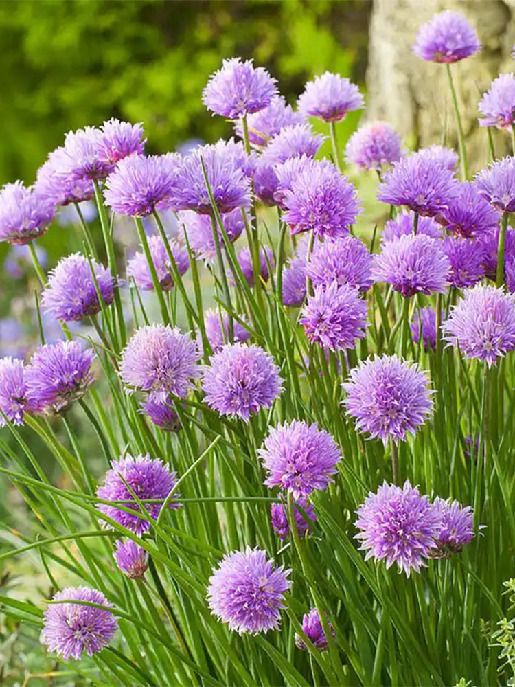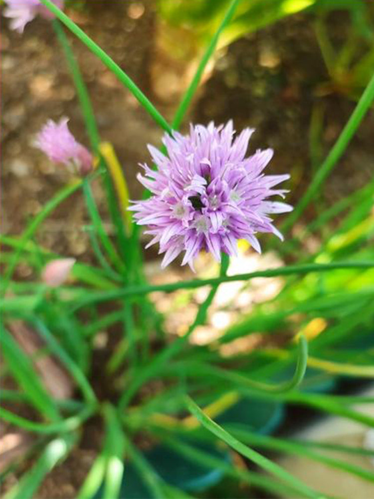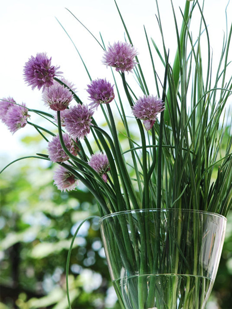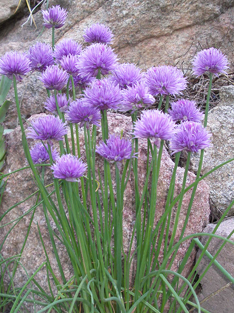- Chives (scientific name: Allium schoenoprasum) are perennial rhizomatous herbaceous plants of the genus Allium in the Liliaceae family, typically reaching 30-45 cm in height. They feature slender, hollow cylindrical leaves that grow in clusters, with spherical purple flowers that produce fragrant blooms in early summer. This cold-tolerant plant thrives in moist environments including grasslands, river valleys, hillsides and meadows, preferring fertile soil with full or partial sunlight exposure. The flowering and fruiting period extends from July to September. With a mild flavor that is less pungent than common onions and slightly reminiscent of shallots, both the leaves and flowers are edible. The chopped leaves are widely used for seasoning and deodorizing in Western, Chinese and Japanese cuisines, while the flowers serve as aromatic additions to salads or decorative garnishes. Additionally, this plant possesses notable medicinal properties and ornamental value.
