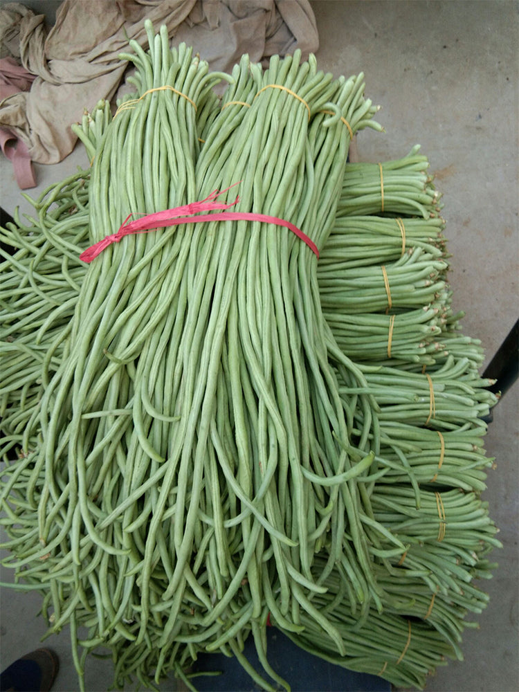 - This variety is a mid-early maturing long bean. The plant has vigorous growth, green and medium-sized leaves, and few branches. The pods are straight, uniform in thickness from top to bottom, light green in color, thick-fleshed, and resistant to aging. They are not prone to seed swelling and do not exhibit rat-tailing. The optimal growth temperature for the plant is 18-33℃. It is highly adaptable and has a stable yield under normal climatic conditions. Under suitable temperatures, it takes approximately 55 days from sowing to harvest. The pods are 70-80 cm long and about 1 cm in diameter, with a high double-pod rate and good marketability.