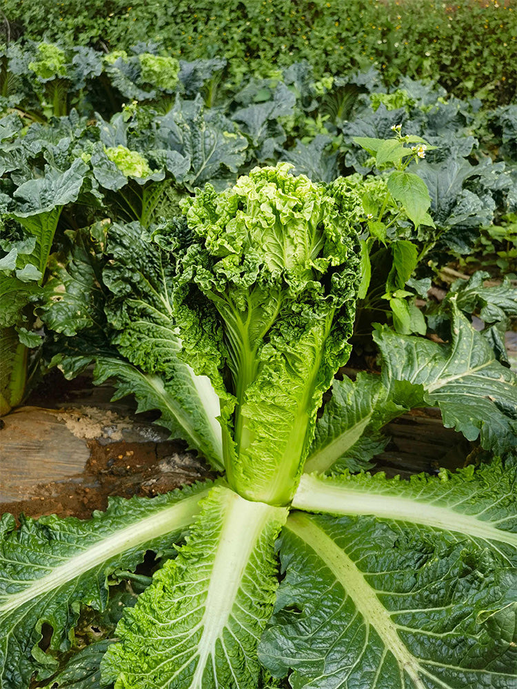 - This F1 hybrid is an early-to-mid maturing variety. The plant exhibits an upright and compact growth habit, reaching a height of approximately 58 cm. It is characterized by a cylindrical shape, sparse outer leaves, dark green foliage, green petioles, and moderately pronounced leaf veins. The head is approximately 52 cm tall, noted for its tender texture, low fiber content, and high market quality. Well-suited for autumn cultivation in most regions, this variety demonstrates strong disease resistance and good storability. It achieves a single-plant weight of 3-3.5 kg, with a net yield of 7,000-8,000 kg per mu. The variety offers stable and high productivity.
