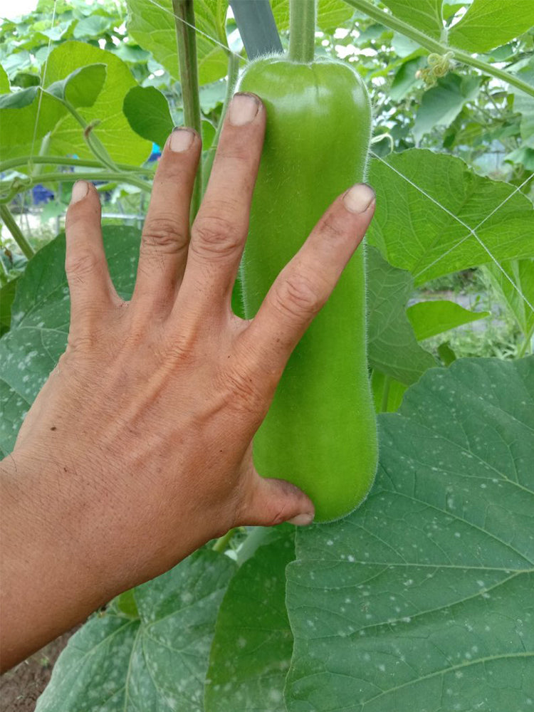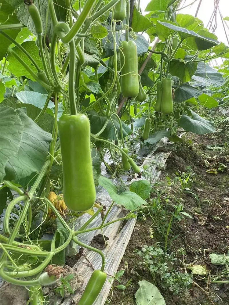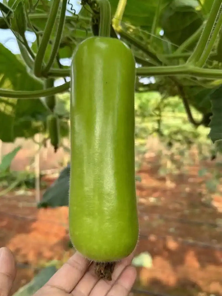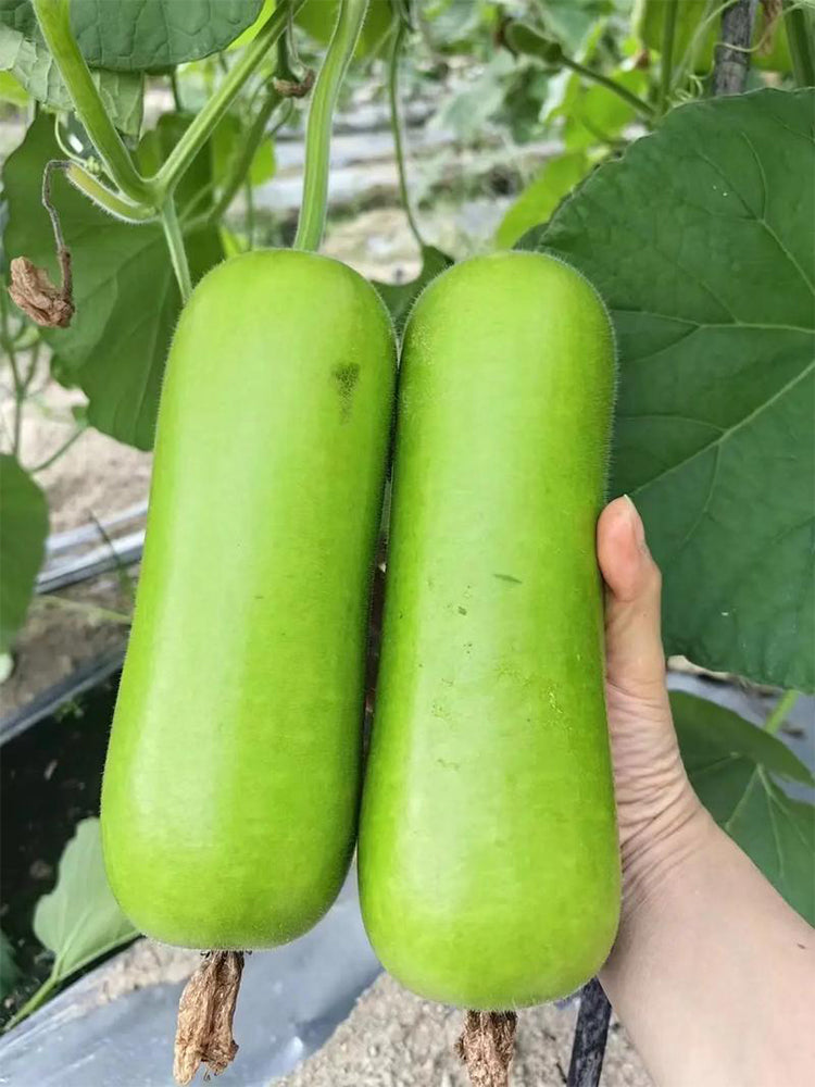 - This newly developed F1 hybrid cultivar exhibits vigorous growth with early to medium maturity and high fruit-setting capacity. The cylindrical fruits measure 24-28 cm in length and 6.5-7 cm in diameter, weighing approximately 500-750 g each. Featuring glossy dark-green skin, the melon offers crisp, tender flesh with a refreshing sweetness, demonstrating excellent market appearance and eating quality.