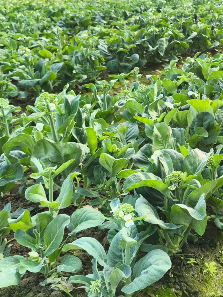 DaBao Chinese Kale is a vigorous mid-late flowering hybrid variety, optimized for high-efficiency production. With a primary stem ready for harvest around 70 days after sowing, it produces thick, succulent stalks with tight internodes and deep green foliage. The semi-spreading plant structure ensures uniform growth, while its ability to generate abundant side shoots after main stem harvest extends the productive cycle. This combination of yield stability and superior quality makes it ideal for commercial cultivation.