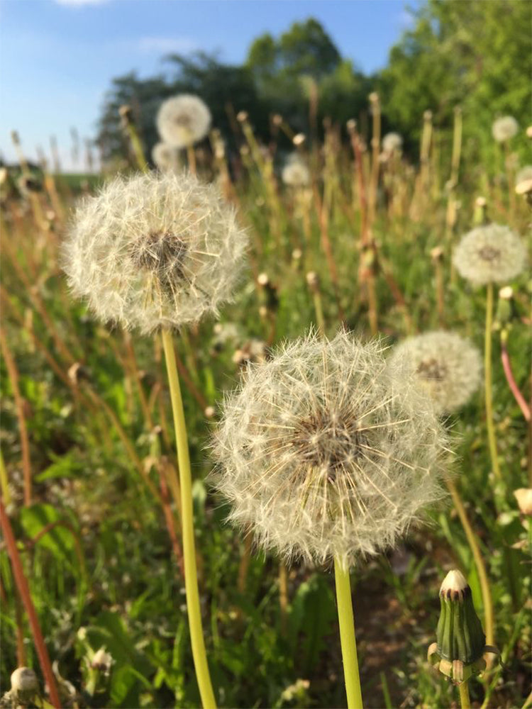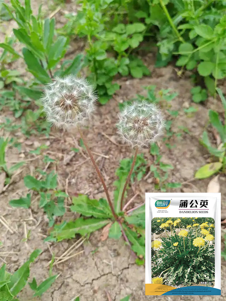 - Dandelion (Taraxacum officinale) is a perennial herbaceous plant of the Asteraceae family. Its leaves are green, sharp-toothed, and fiberless, with purple stems. The plant is cold-resistant and easy to cultivate, capable of growing at temperatures above 6°C. It flowers from April to May and fruits from June to July, commonly found on hillside grasslands, roadsides, riverbanks, sandy areas, and fields. As a commonly used Chinese medicinal herb, dandelion tastes bitter and sweet, is cold in nature, and acts on the liver and stomach meridians. It has the effects of clearing heat and detoxifying, dispelling swelling and resolving masses, and promoting diuresis and relieving stranguria. Its young seedlings and leaves are also edible, suitable for raw consumption, stir-frying, soup-making, or cold dishes, offering a unique flavor. Additionally, the plant features bright flowers and a distinctive head inflorescence. The white pappus balls formed by its seeds drift with the wind when mature, providing both fun and ornamental value. It is suitable for landscaping in flower beds, flower borders, and as ground cover plants.