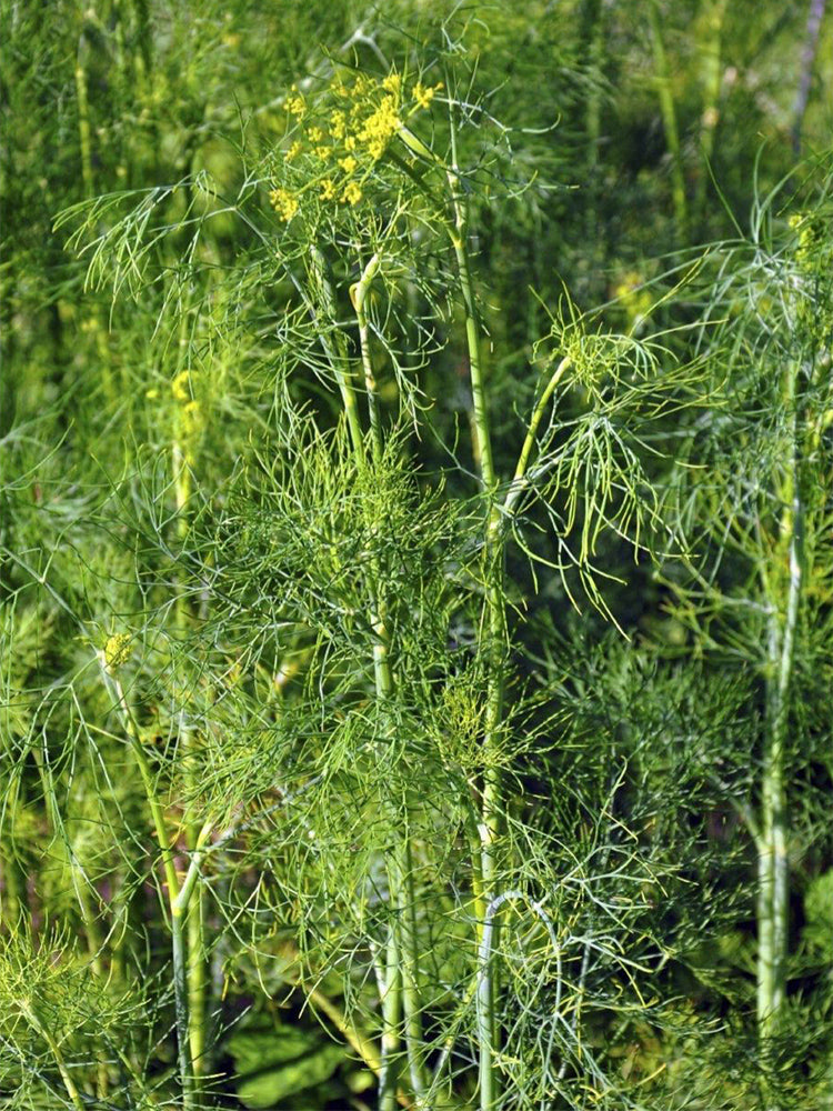 - Dill is an annual herb with a fennel-like appearance, 60-120 cm tall, glabrous throughout, with a strong pungent odor. The stem is erect and smooth, cylindrical, with longitudinal thin stripes on the surface, 0.5-1.5 cm in diameter. Its small yellow flowers are distributed in umbels, and the leaf blade is needle-like and divided. Its pungent components have both pain-relieving and sedative effects. In addition to its medicinal uses, dill is mostly used in cooking to deodorize fish or to add an herbal flavor, and can be used directly as a condiment. The unripe fruit and seeds can be refined into an edible essential oil or dried to make a spice, and the leaves can be eaten fresh or dried to provide an aromatic flavor to dishes. Dill prefers warm, humid climates, and does not tolerate heat, drought or cold. It is suitable for growing in moist, fertile soil and is usually propagated by sowing.