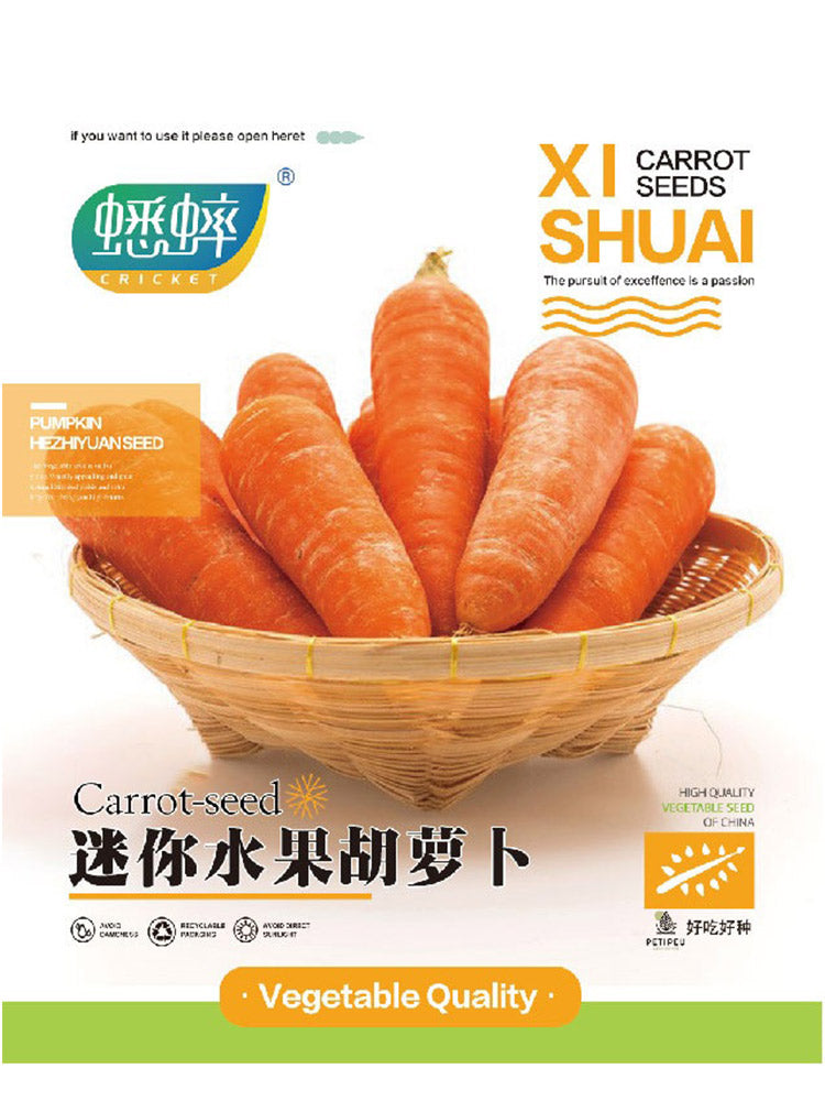 A newly developed early-maturing mini carrot variety, with slender, cylindrical roots. The carrots are small and appealing, featuring a deep red, finger-like shape. The roots grow to a length of 14-16 cm (5.5''-6.3'') and a diameter of 1.3-1.5 cm (0.5''-0.6''), with an average weight of 15 grams (0.53 oz). The growth period is about 70 days, and the variety is resistant to bolting. It is suitable for open-field cultivation in spring and autumn, as well as protected cultivation in spring, autumn, and winter. Ideal for gourmet vegetable production, it can be supplied to high-end restaurants and used in nutritious meals for school children.
