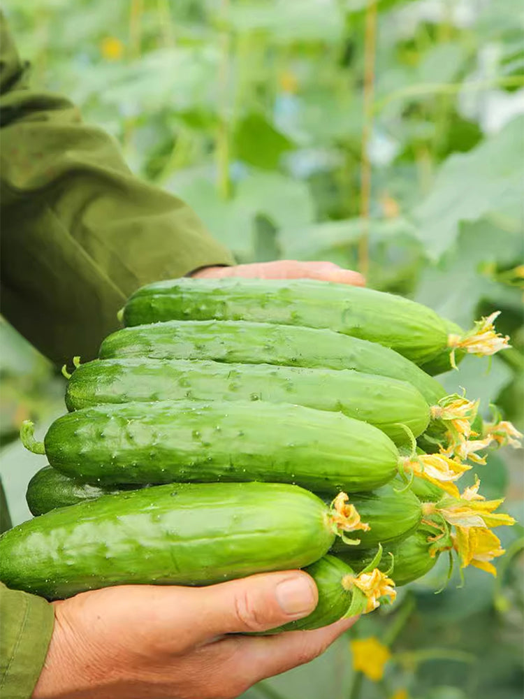 - This variety shows vigorous growth and high productivity, with cucumbers developing on both the main stem and lateral branches. The fruits are straight, dark green, and covered with small spines. Their length-to-diameter ratio is 3.2:1. The plants are highly adaptable, disease-resistant, and high-yielding. The cucumbers are solid (non-hollow) with high dry matter content, making them excellent for pickling and delivering a crisp texture.