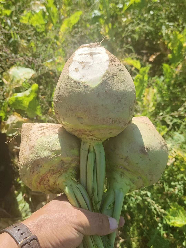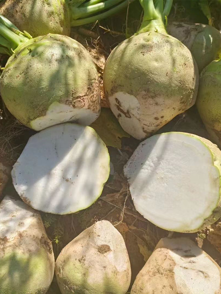 - The plant exhibits vigorous growth with a semi-erect habit and dark green leaves. Its growing cycle is approximately 85 days. About one-third of the fleshy taproot grows underground; it is conical, smooth, and visually appealing, with an average individual plant weight of about 1 kg. The flesh is fine, dense, and firm, low in fiber, and has a spicy taste, contributing to its high quality. It also demonstrates good heat tolerance and broad adaptability. This variety is well-suited for pickling or use in spicy dishes. It is recommended for cultivation within its designated sowing regions, offering strong comprehensive disease resistance, high marketability, and excellent plant uniformity. Under suitable temperature conditions, it provides stable yields.