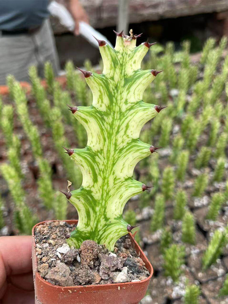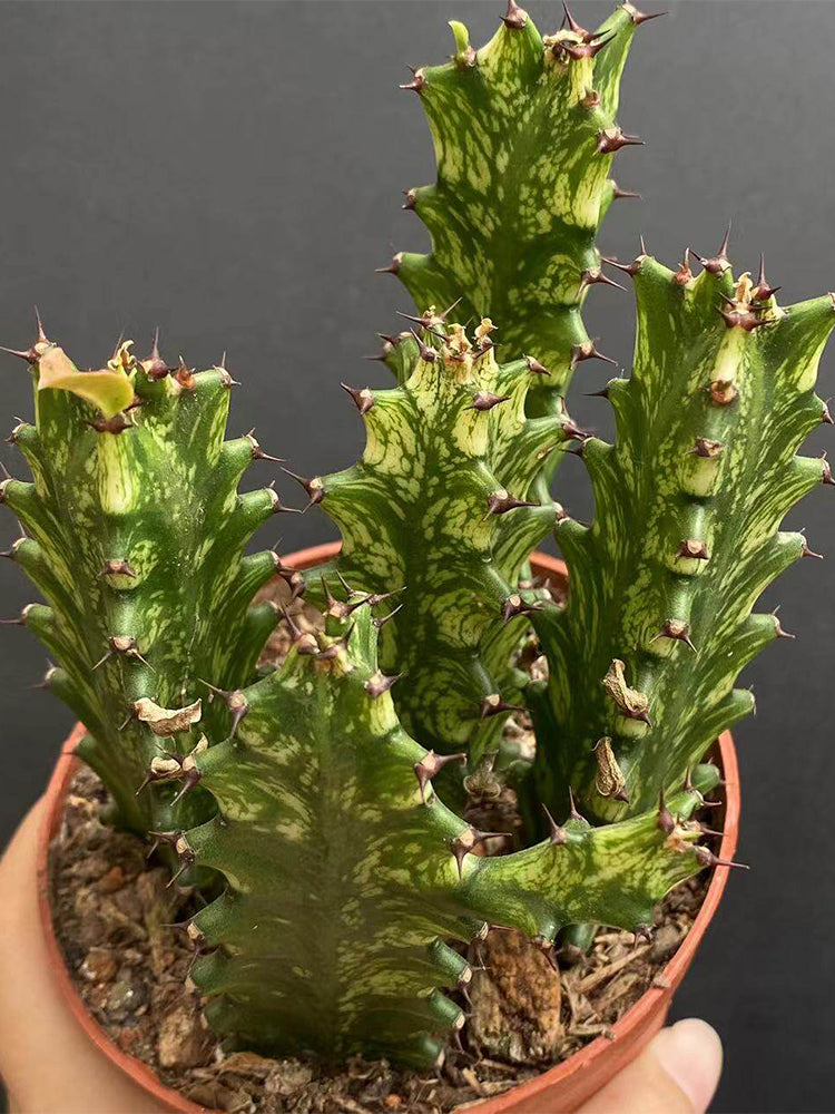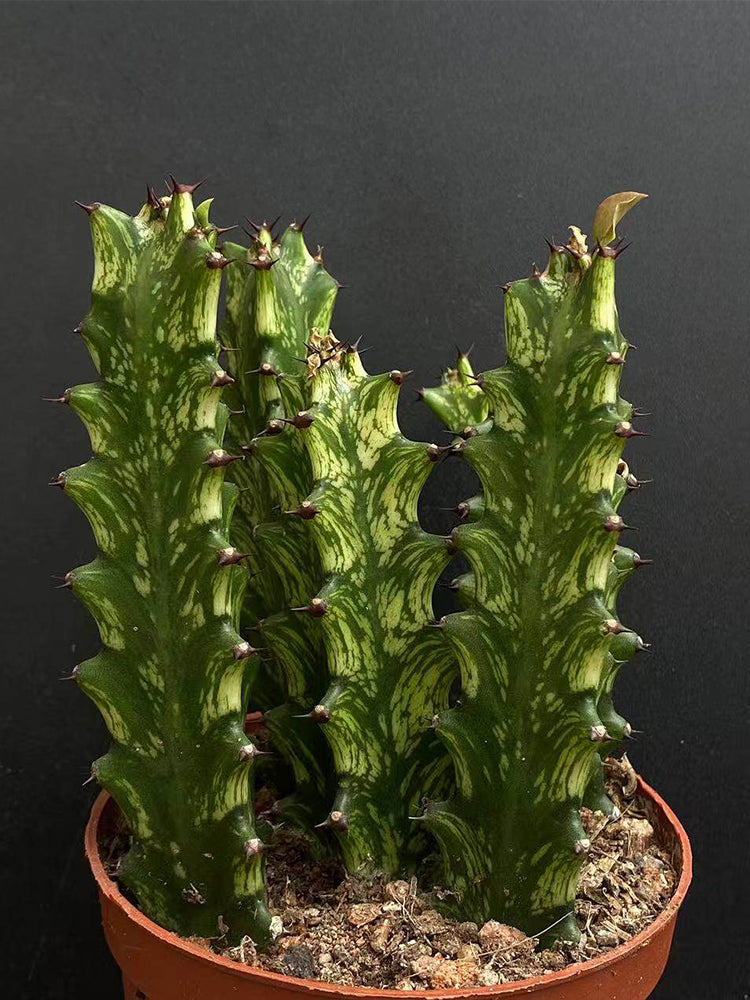 • Unique Variegated Foliage: Vibrant yellow-green marbling on its angular stems sets it apart from the non-variegated species, making it a collector's favorite.