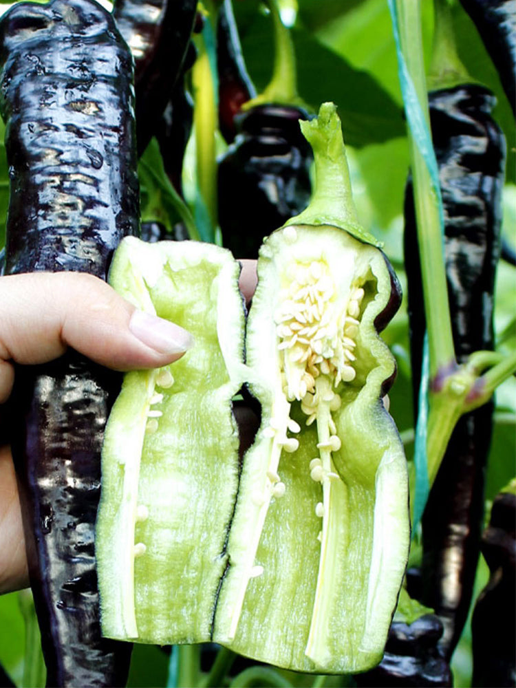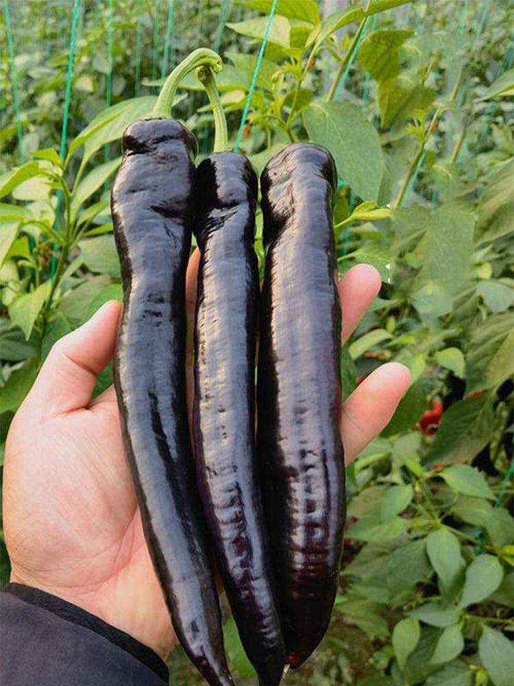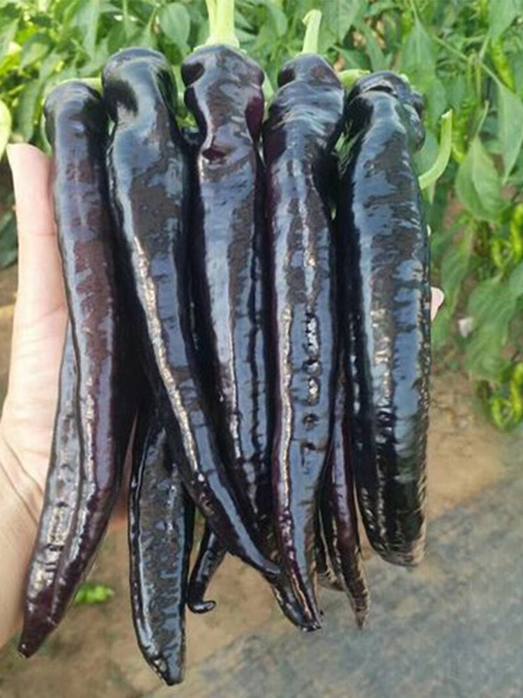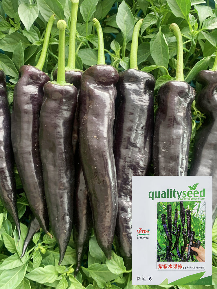 - This is a new generation F1 hybrid purple pepper variety, which belongs to the early maturing type. It has a strong ability of continuous fruiting, a good flavor, rich nutrition, and is rich in anthocyanins. The fruit is purple and turns red when it is ripe. It is suitable for cultivation in arch greenhouses in the late autumn extended season and early spring. It has strong disease resistance and wide adaptability.
