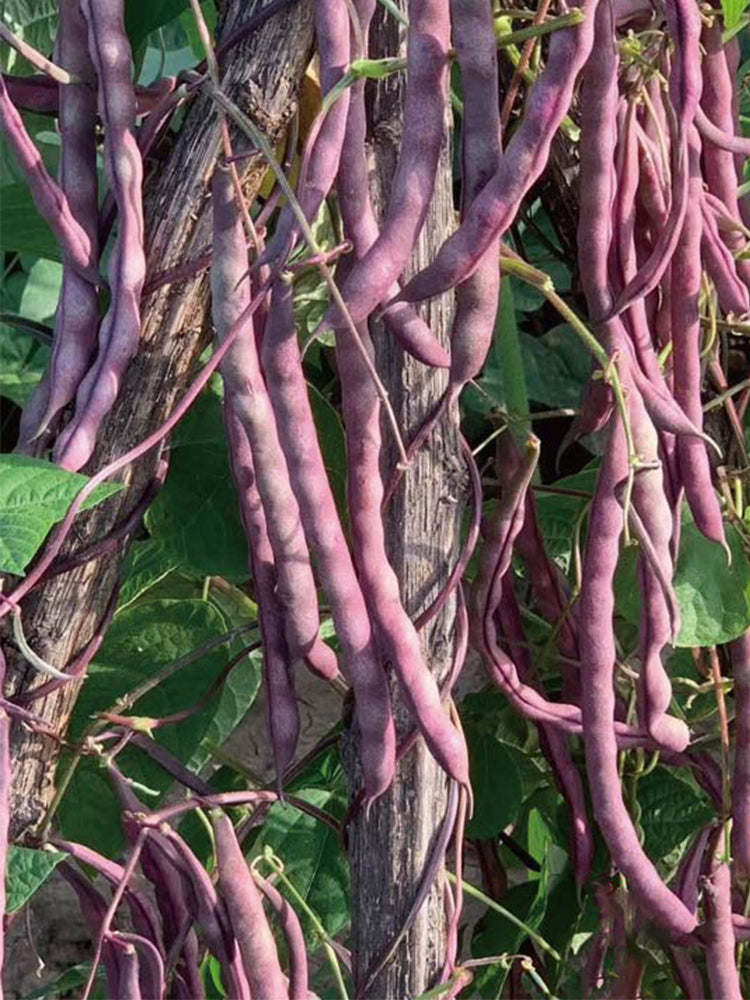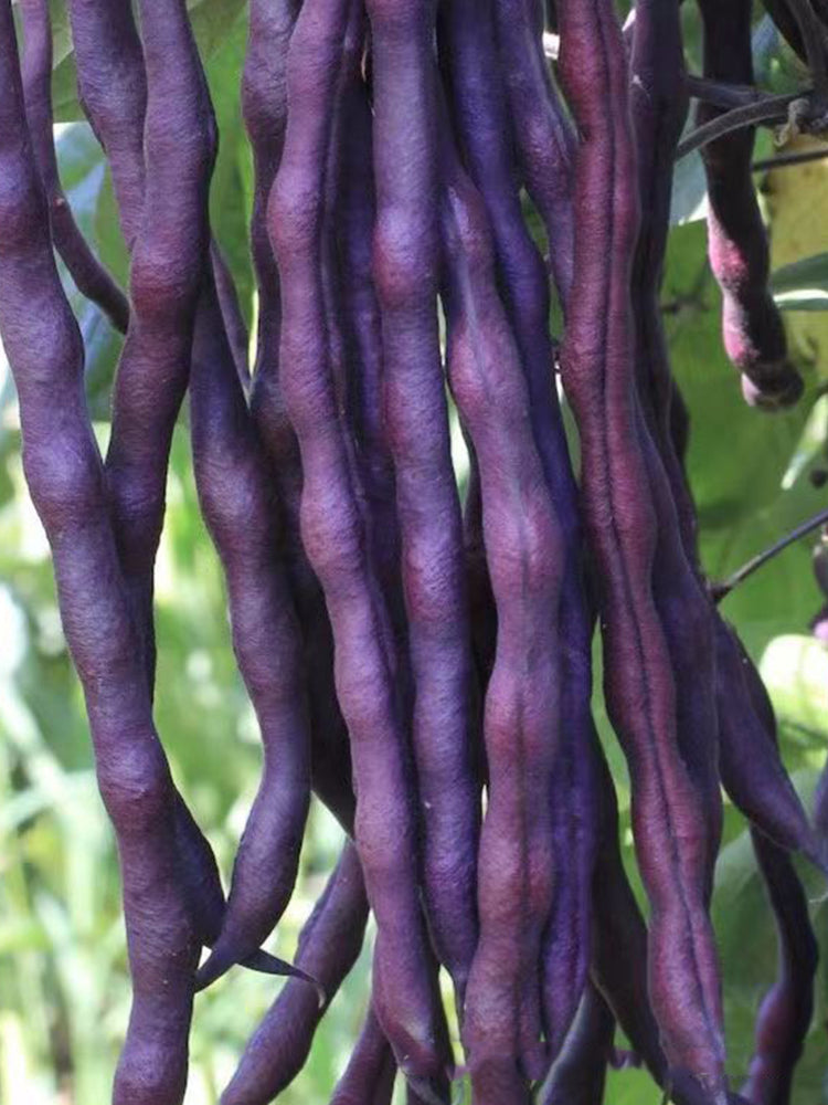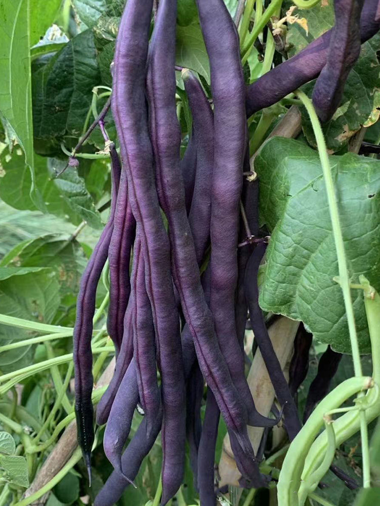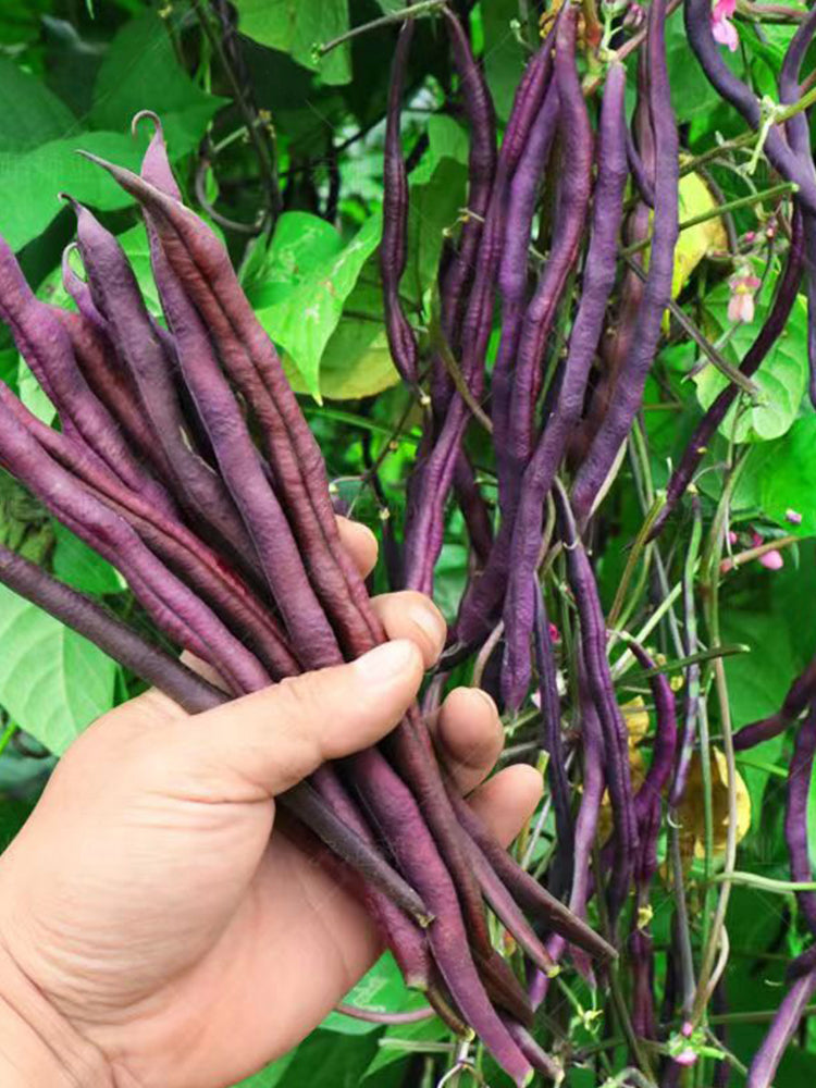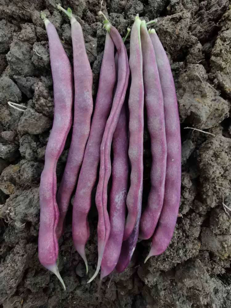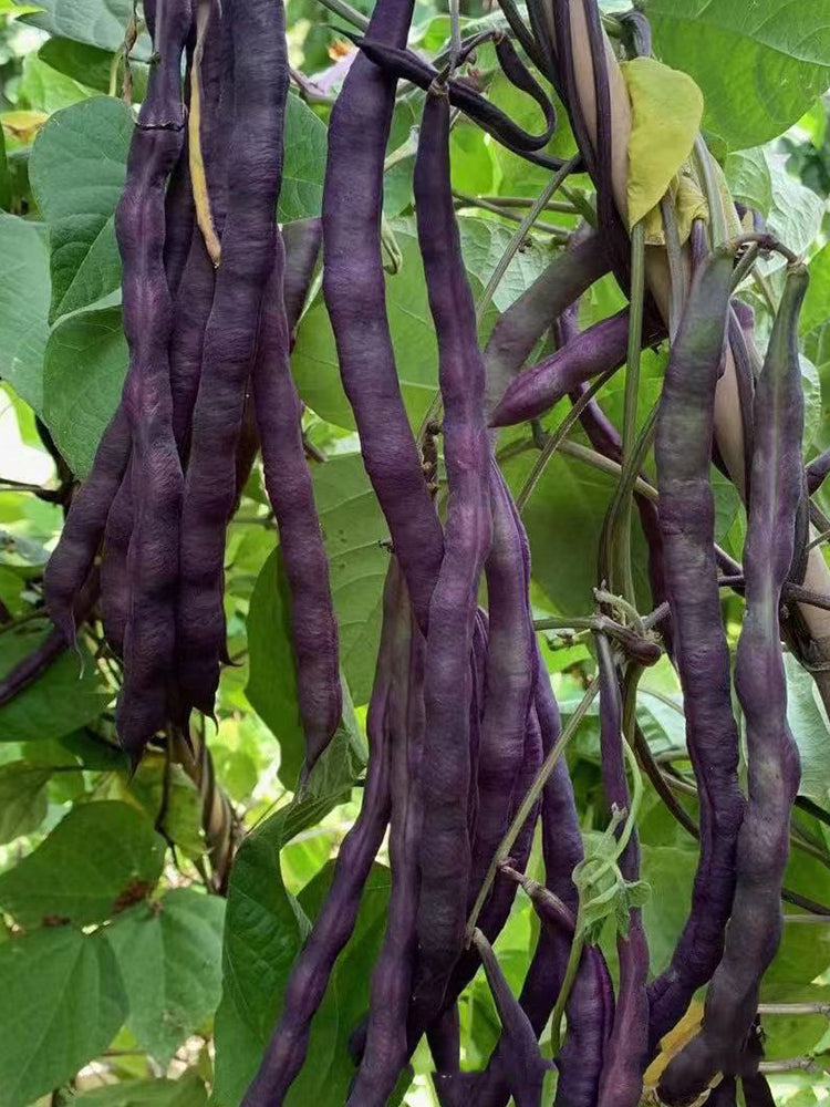 - This variety of plant trailing, plant height of more than 300cm, strong growth potential. The young pods are purple, about 20-25cm long, with thick flesh, less fiber and good quality. After the young pods are fried and decocted, the original purple color disappears and becomes bright green. The variety of early maturity, good yield, suitable for fall sowing, from sowing to harvest about 65 days, mu yield of about 2000 to 3000 kg.