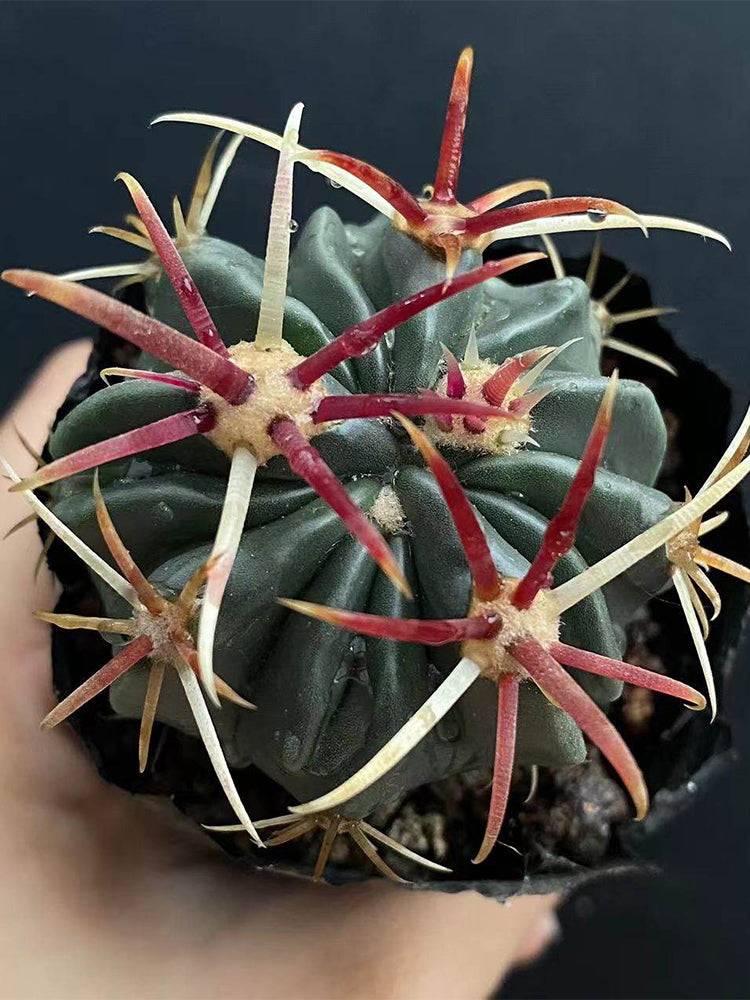 1. Standout Aesthetic: Its red recurved spines set 'Sunrise' apart from common barrel cacti, serving as a focal point in any plant collection.