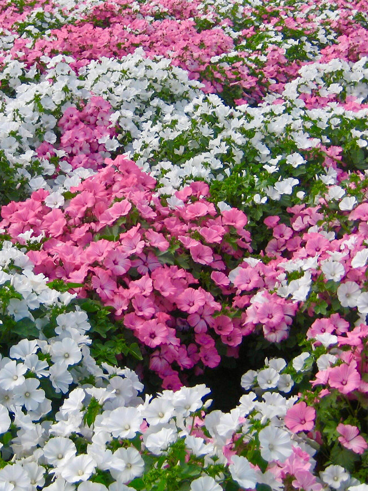 - Flower mallow (syn. Malva trimestris) is an annual herbaceous plant of the Malva genus in the Malvaceae family, native to the Mediterranean coast of Europe. It has a tall and spreading plant shape with few branches, and the whole plant is covered with short pubescence. Flower mallow is renowned for its unique flower shape and vibrant blooms, featuring a rich color palette including red, pink, white, etc. Among them, the most common variety has pink petals with a light white hue, creating a strong visual impact when in full bloom. The flowering period is relatively long: it generally blooms from April to August in areas with suitable climates. With strong adaptability, it prefers a sunny, cool and humid environment, is relatively drought-resistant, and thrives in fertile, loose loam. Due to its high ornamental value, it is widely planted and used in flower borders or clump planting in lawns of parks, courtyards, and gardens. It can also be used to embellish roadsides and hedge corners, creating a landscape effect similar to that of flowering trees. Additionally, it is suitable for potted decoration, ideal on balconies, in bedrooms, on windowsills, or in study rooms.