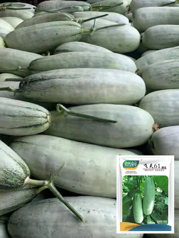 The Flying 61 Yangjiao Melon is a premium cultivar of Cucumis melo L., belonging to the famous “Yangjiao Honey Melon” type. Known for its unique horn-shaped fruit, crisp texture, and high sweetness, this early-to-mid-maturing variety is highly valued by both commercial growers and home gardeners.