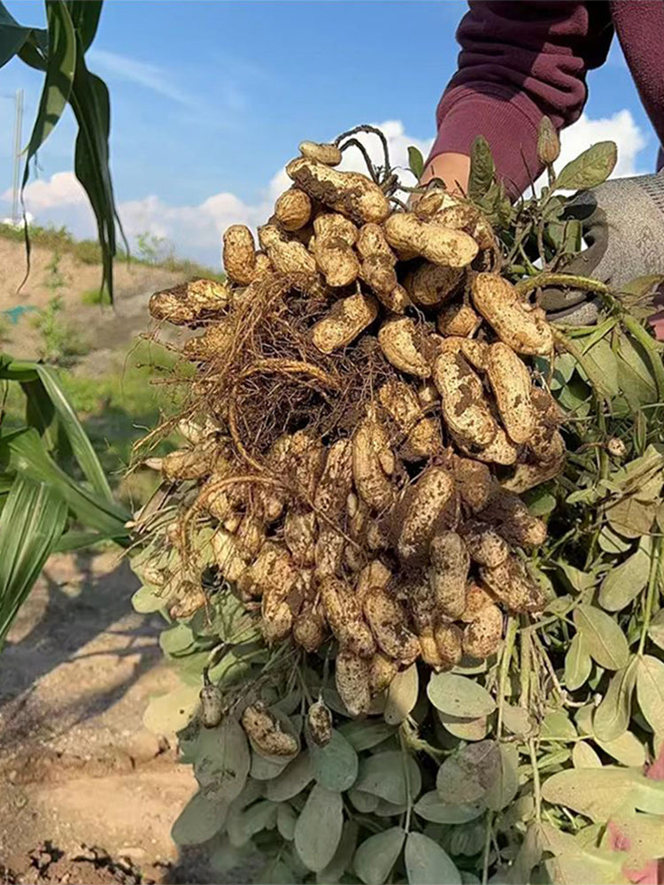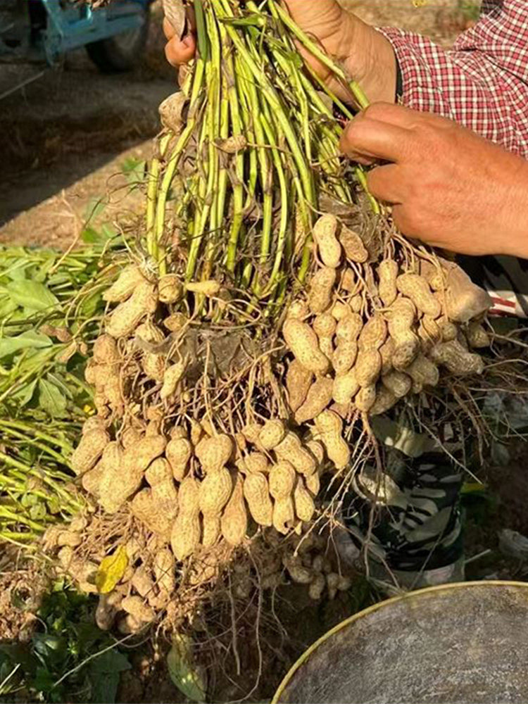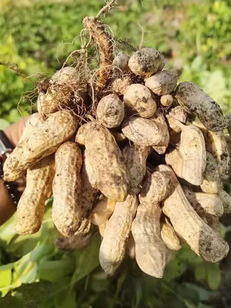- This is a medium-early maturing peanut variety with a total growth period of 110–135 days. It features semi-erect plants, strong lodging resistance, a plant height of ~39 cm, and dark green leaves with continuous and abundant flowering. The pods exhibit excellent traits: 100-pod weight of ~200 g, double-kernel pod rate >70%, and shelling percentage >70%, yielding ~300 kg/mu (≈4,500 kg/ha). The kernels are clean, plump, and impurity-free, with a reddish color, crispy texture, sweet taste, and rich nutritional value.