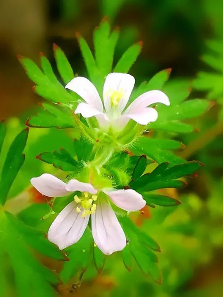 Geranium wilfordii is a perennial herb that thrives in warm, humid climates, making it perfect for gardens. With striking white or pale pink blooms from June to August and ornamental leaves, it's ideal for ground cover. Additionally, it's valued in traditional medicine for its ability to dispel wind and unblock meridians.