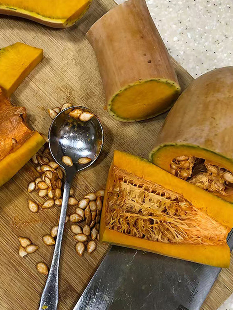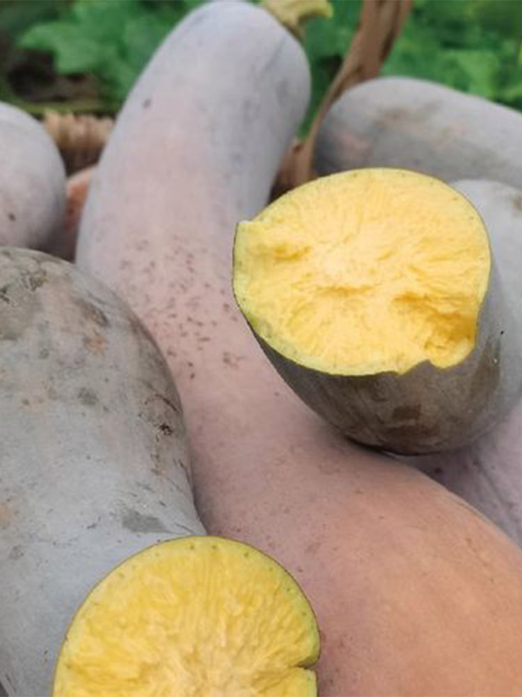 - This variety is a medium-late maturing deep-rooted crop with strong adaptability to the soil. The skin of its young melon is greenish, turning yellow or blackish green and covering with white frost after maturity. The shape of the fruit is like a weighing hook. The upper half is completely solid, and the cavity of the lower half is very small with scarce seeds. The flesh is thick, tender and delicate, with low fiber content and a unique sweet taste and waxy texture. This variety mainly bears melons on the side vines, and the weight of a single melon is 2.5-5 kilograms, with a yield of up to 5,000 kilograms per mu. It has both fresh consumption and processing value, and is suitable for various cooking methods such as stir-frying, boiling, stewing, etc.