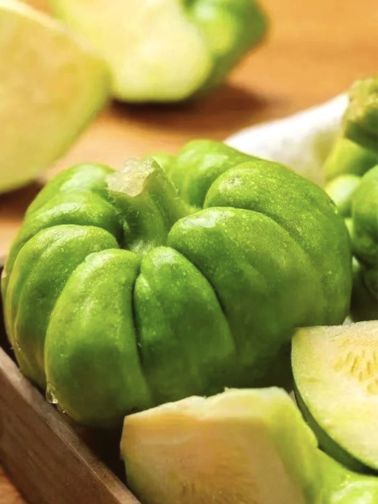 - This variety is an early-maturing pumpkin hybrid generation that mainly consumes young melons. The plants are trailing, with good fructification and fast melon expansion. A single plant can produce 4-6 melons. The melons are flat and round in shape. The small melons are bright green and the old ones are yellow. They have thick flesh and small cavities, and show strong adaptability. It can be harvested and marketed 10-15 days after pollination, and it is generally suitable for harvesting young melons with a weight of 1kg.