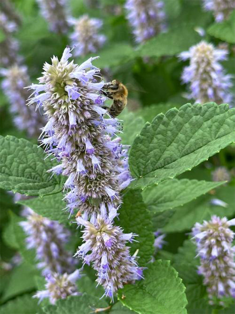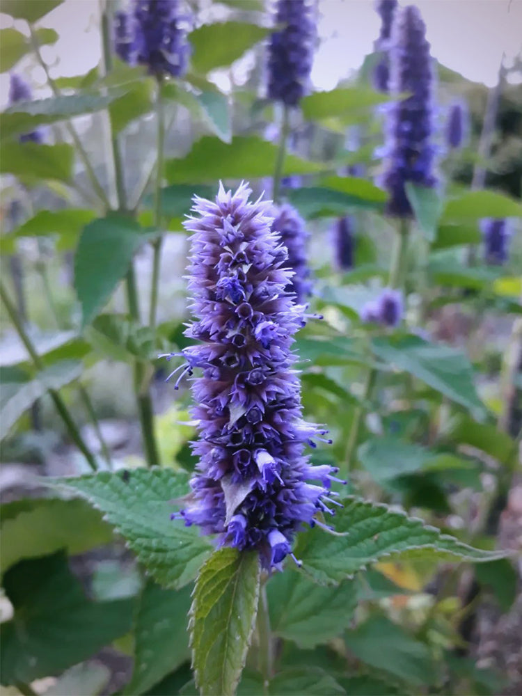 - Korean mint (Latin name: Agastache rugosa) is a perennial herb of the genus Agastache in the family Lamiaceae, widely distributed in East Asia. The plant grows about 40–100 cm tall, with an upright stem and opposite leaves that are ovate or heart-shaped, featuring serrated edges. In summer, it bears small lavender-blue flowers that densely form spike-shaped inflorescences and emit a unique aroma. The flowering period is from June to September, and the fruiting period is from September to November. Korean mint thrives in warm and humid climates, commonly found in moist soil environments such as hillsides, forest edges, and streams.