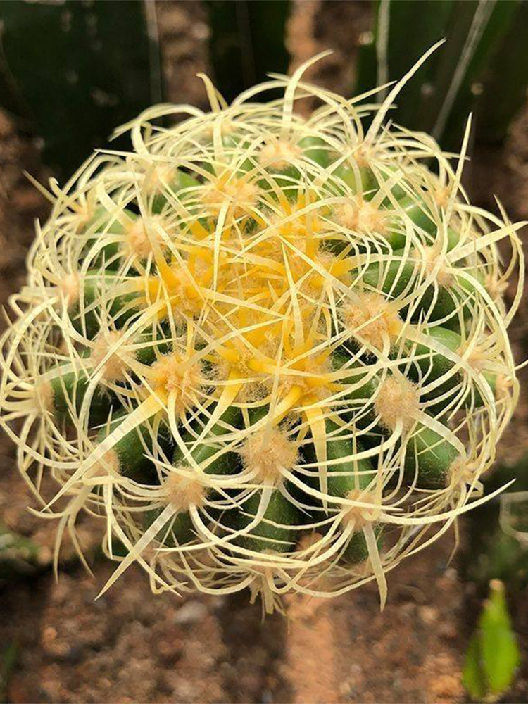 • Unique Foliage: A rare, curly-spined mutation of the classic golden barrel cactus, with dense, interwoven pale yellow spines that form a wild, textured crown.