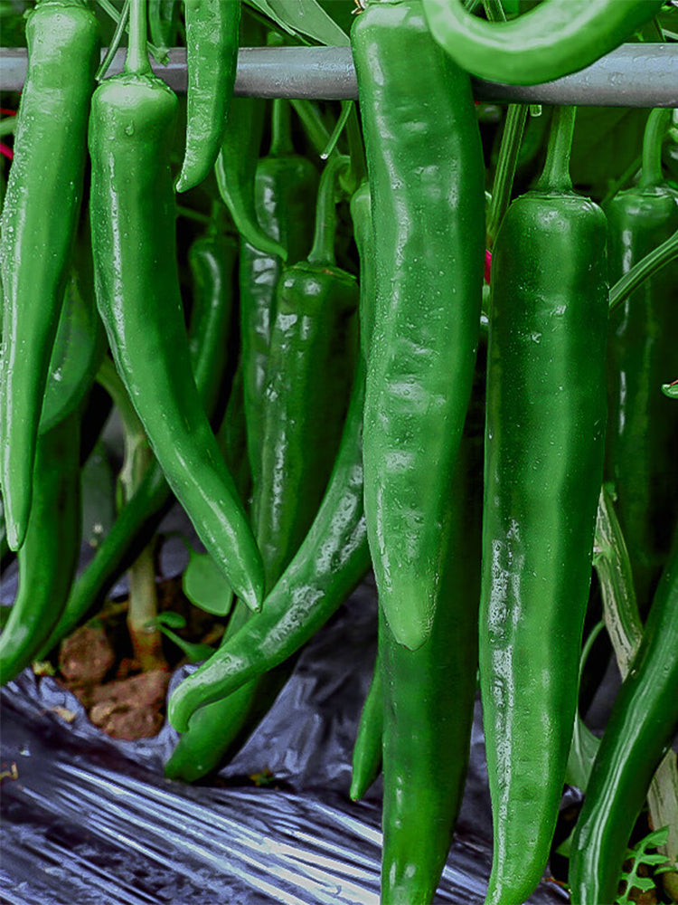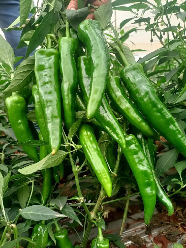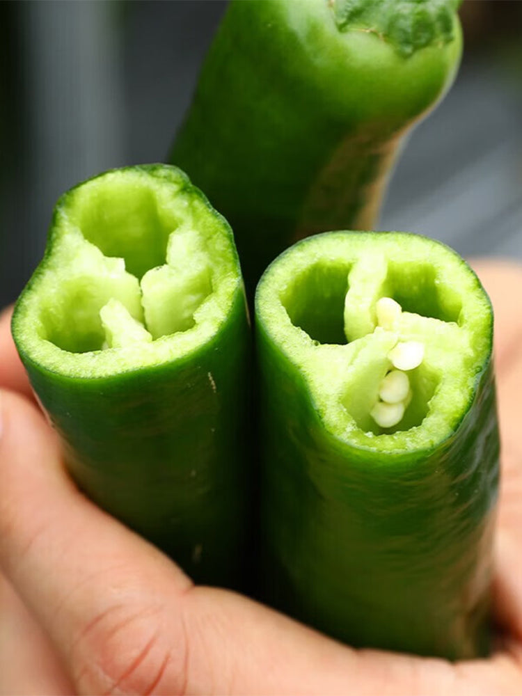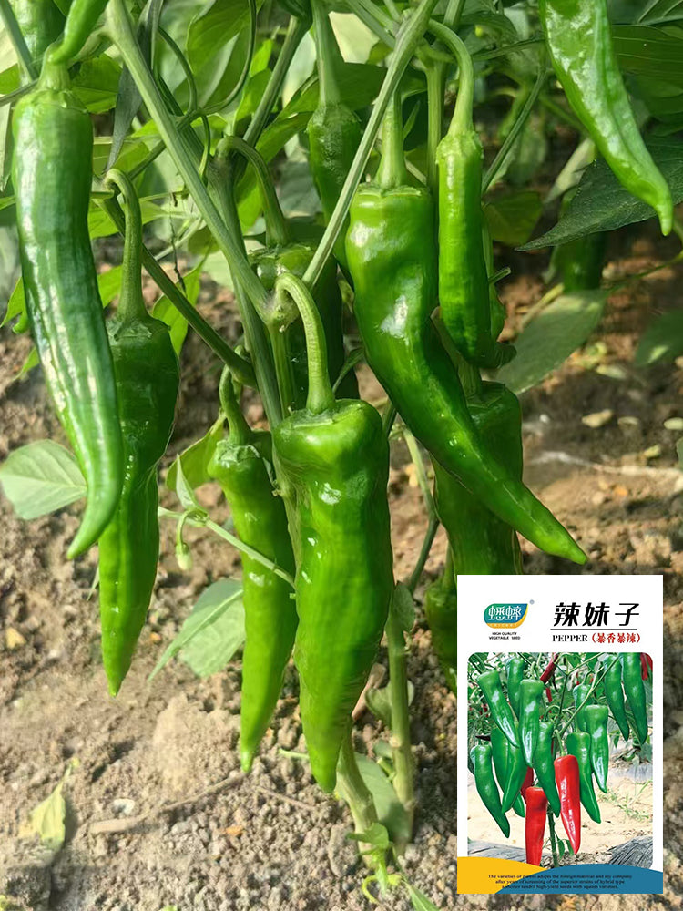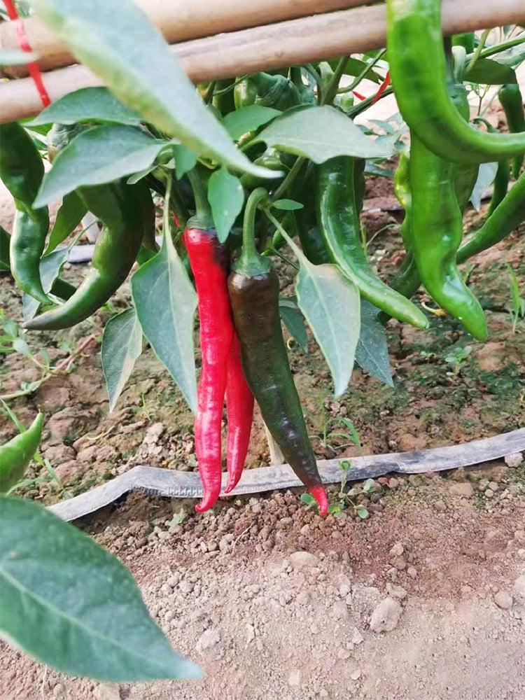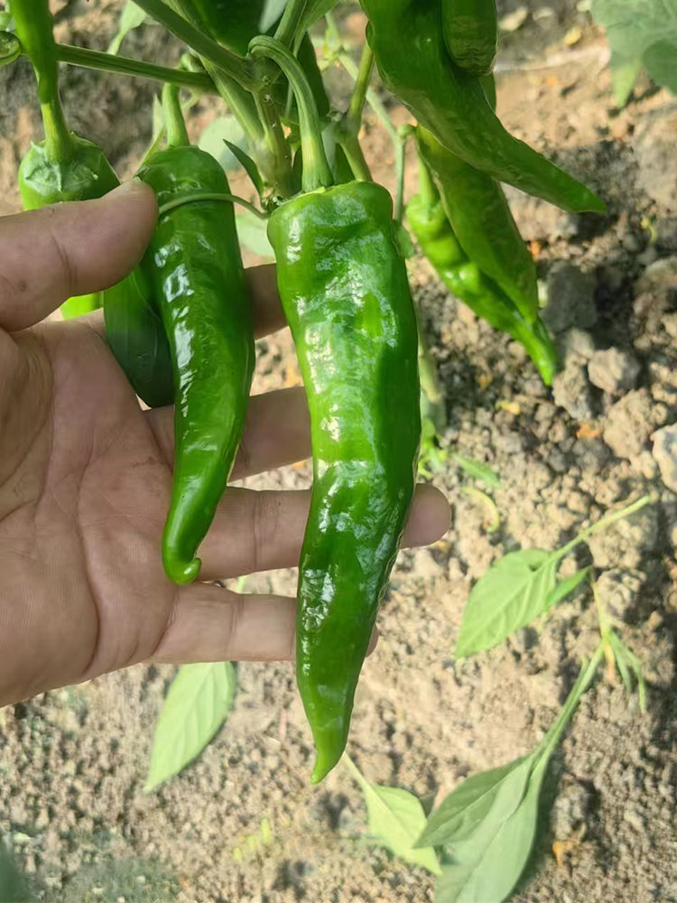 - This variety is early-maturing, with a growth period of about 95 days. The fruit is 10-13 cm long, about 2.5 cm in diameter, and each fruit weighs 20-25 grams. The green fruit is dark green in color, smooth on the surface, and has a strong spicy taste. It has strong disease resistance, good branching ability, and a very high fruit setting rate. If continuous harvesting is adopted, the yield per mu can generally reach more than 5,000 kg. It is suitable for both greenhouse cultivation and open field cultivation, with stable yield and good high-yield performance.