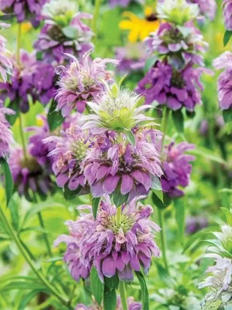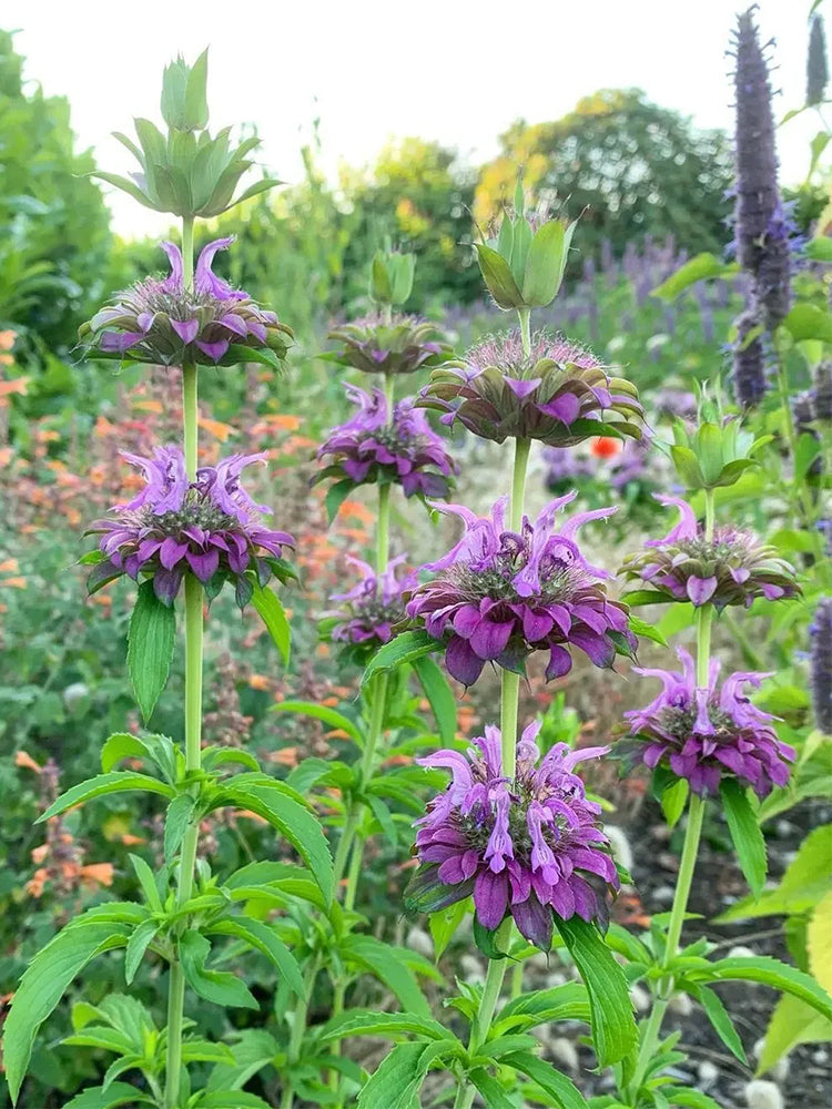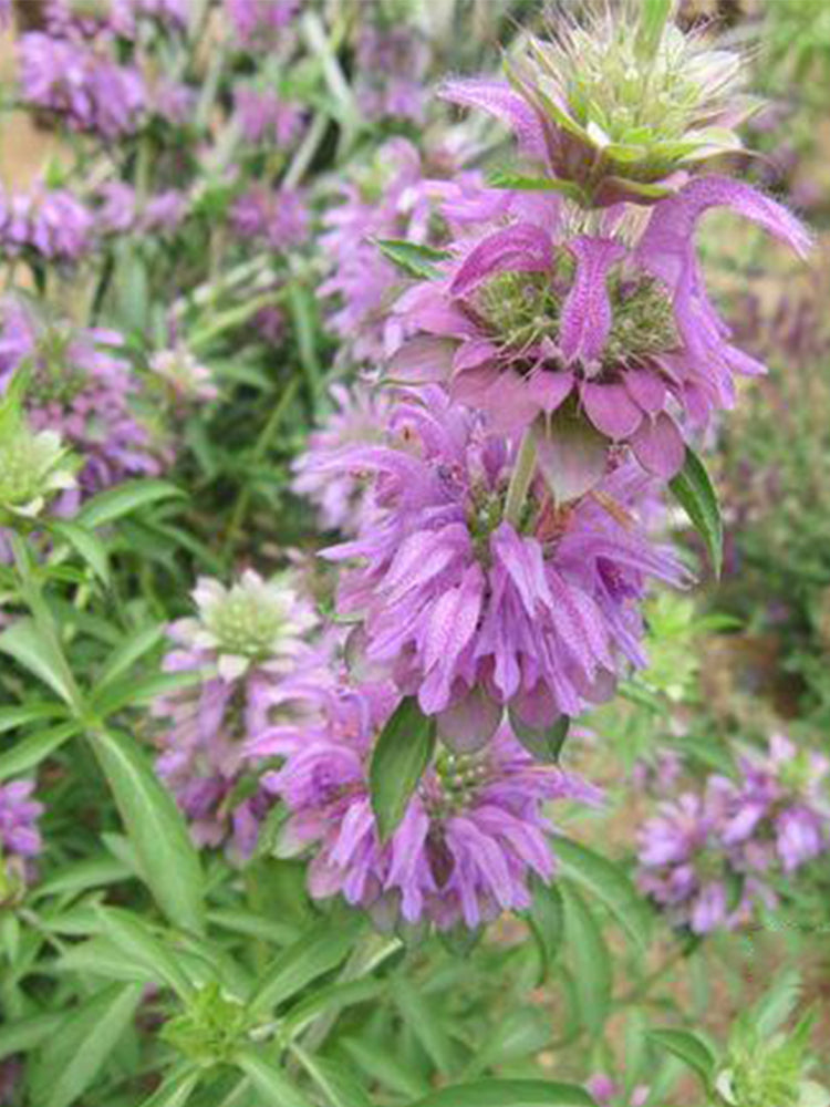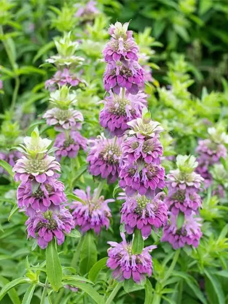 - Monarda citriodora, commonly known as lemon beebalm, lemon mint, or purple horsemint, is a flowering plant in the mint family (Lamiaceae). Its crushed leaves release a lemon-like scent, though this may resemble oregano later in the season. The plant features purple flowers that attract butterflies, bees, and hummingbirds. Tolerant of dry soil, it thrives with minimal water and direct sunlight, growing about 40 cm tall with lance-shaped leaves. It blooms from June through September, which may persist longer with watering. It is an annual plant. Its Latin epithet 'citriodora' refers to its citrus aroma.