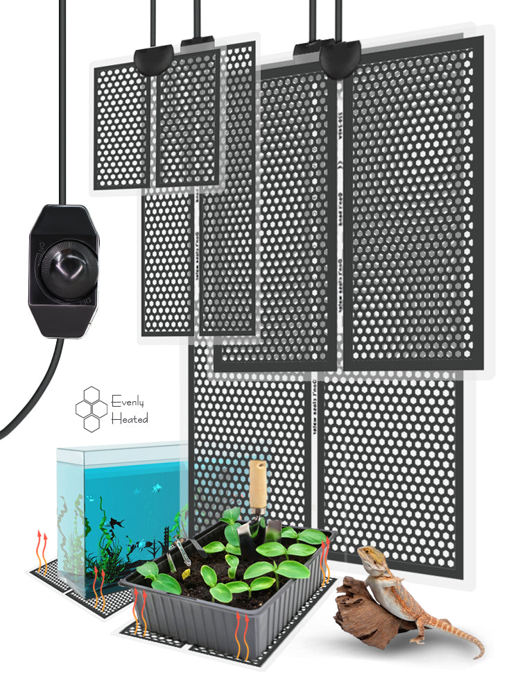 🌱 Honeycomb Design for Even Heat Distribution: The heating mat features an innovative honeycomb design that ensures even heat distribution across the entire surface, preventing hotspots or cold spots. This design not only provides a safer heating experience for your reptiles but also benefits aquatic pets by promoting a balanced and healthy environment, which in turn supports their metabolism and overall well-being.