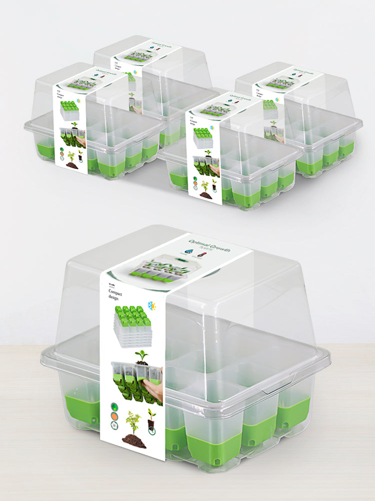 🌱 Material Composition: The colored base of the seed tray is made of flexible TPE material, providing durability and ease of use. The semi-transparent part of the tray is crafted from PP material, while the cover and water tray are both made from PET, ensuring longevity and high transparency for better observation of seedling growth.