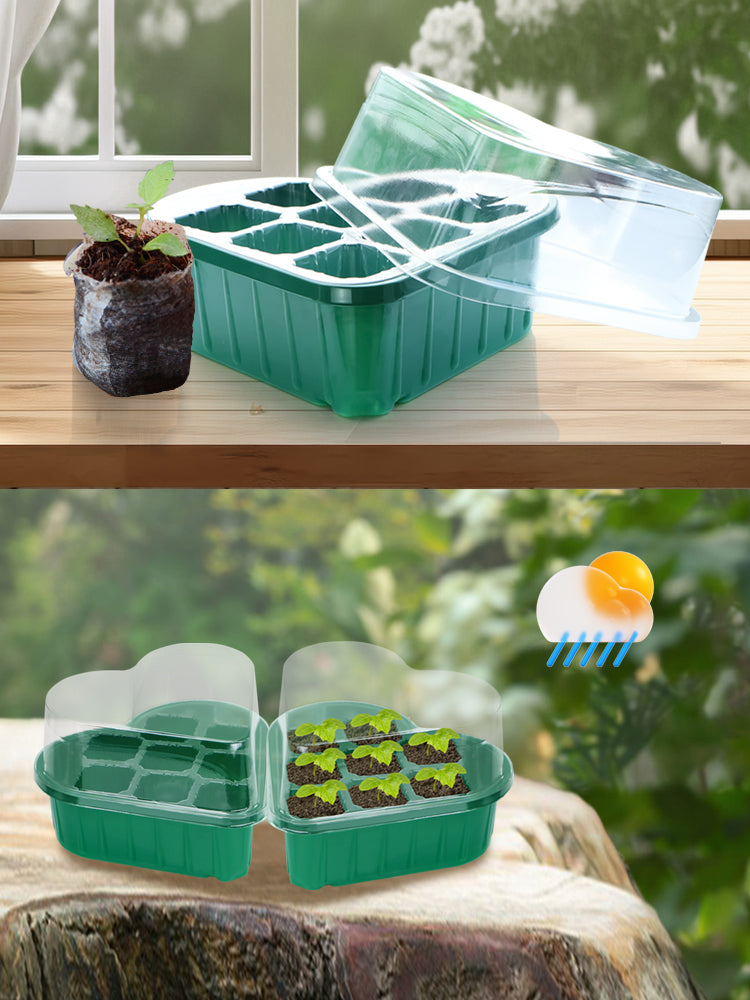 🌱 High-Quality PET Material: The seed tray and transparent lid are made from high-transparency PET material, ensuring excellent light transmission for optimal photosynthesis. The green tray is lightweight, durable, and made from eco-friendly, non-toxic PET, providing a safe and sustainable environment for seedling growth.