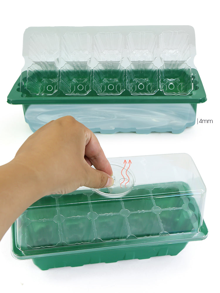 🌱 Adjustable Ventilation Openings: The transparent lid is equipped with three small adjustable ventilation openings. By rotating the vent covers, you can easily control the airflow inside, maintaining the ideal humidity and temperature. This feature promotes a stable environment for seedlings, encouraging fast and healthy early-stage growth.