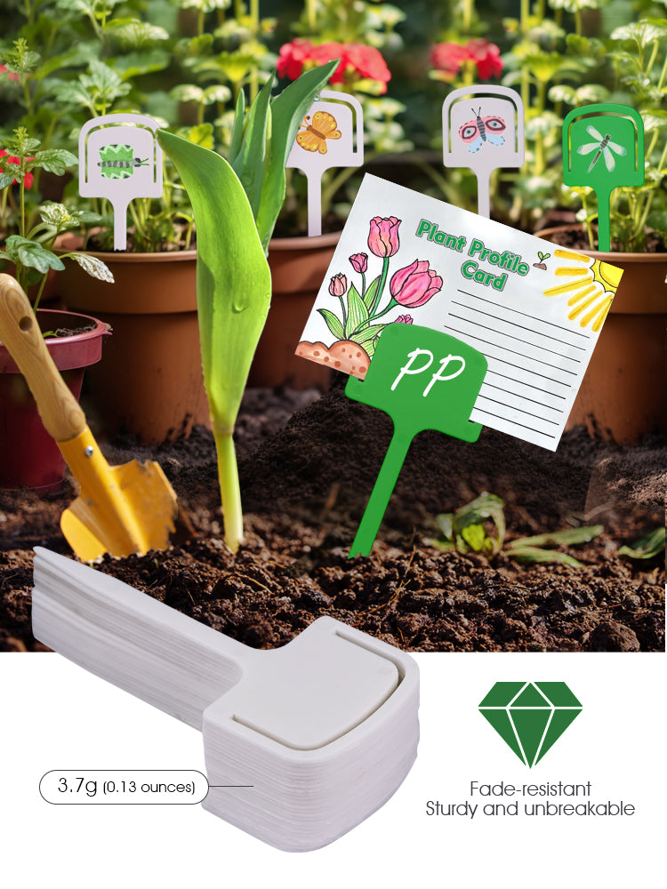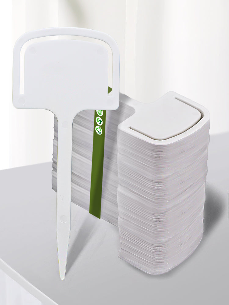 This T-shaped plant label is made from durable PP with a writable frosted surface and smooth edges. It features a handy clip design and is suitable for both indoor and outdoor gardening. Available in white and green, perfect for labeling plants in various environments.