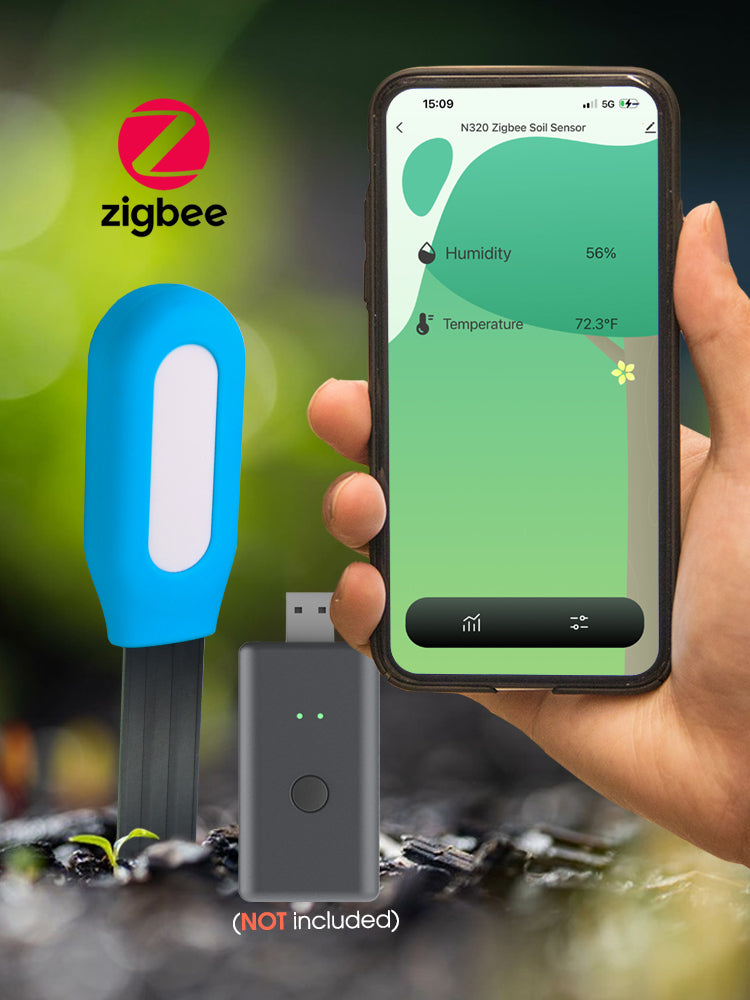 🌱 Zigbee Wireless Connectivity: N320 plant monitor utilizes Zigbee wireless technology, requiring a Zigbee gateway for connection to the app. Please note that the gateway must be purchased separately for full functionality. Zigbee ensures stable signal transmission for real-time data updates.