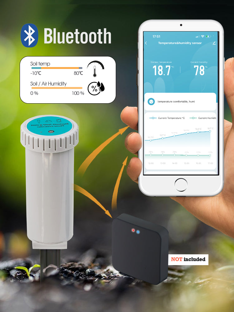 🌱 2-IN-1: The N336 Soil Sensor operates with 4 AA alkaline batteries (NOT included) and does not include a gateway. It offers real-time monitoring of soil temperature (-10°C to 85°C, ±0.5°C accuracy) and humidity (0-100% RH, ±1% accuracy) within Bluetooth range. Ideal for plant care and agricultural needs.