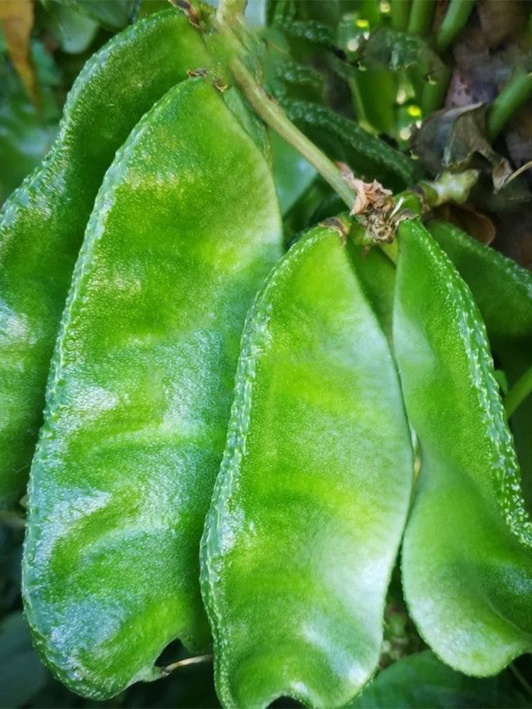 - This variety is an early-maturing trailing type. Its plant growth potential is strong. From the base of the main vine begins to flower and set pods, and side vines also have the ability to set pods. And the plant can grow while setting pods, and the harvesting period is relatively long. The leaves are green, the pods are dark green, and the pods are 6-8cm long and 2.5cm wide. It has a tender and delicious taste, is smooth and crispy, with less fiber, good quality and is really delicious. This variety not only has strong disease resistance and can achieve high yield, but also has strong adaptability. Moreover, it has high nutritional value, making it a high-quality variety with both great taste and rich nutrition.
