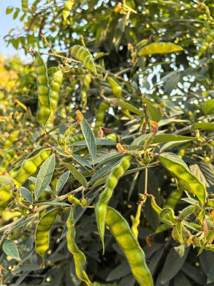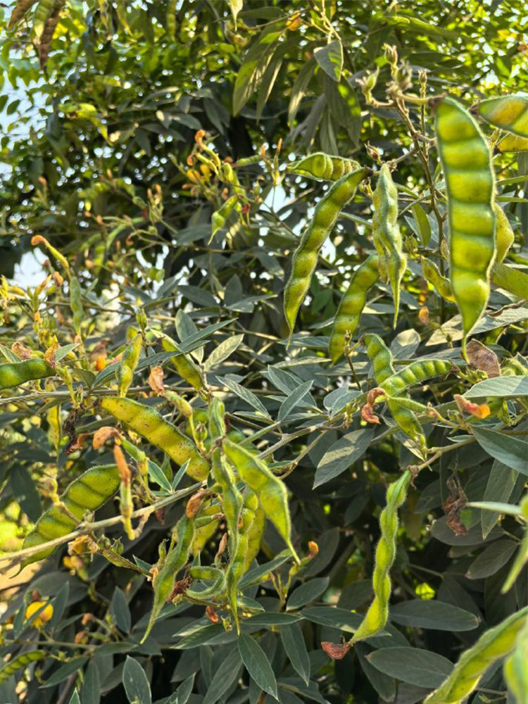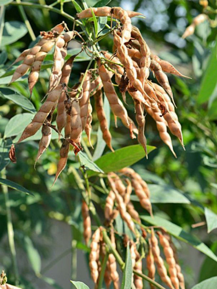 - Pigeon pea is an upright shrub reaching 1-3 meters in height with dense branching. Young branches exhibit distinct longitudinal ridges and a dense covering of short, grayish-white pubescence. The leaves are compound, consisting of three lanceolate to elliptical leaflets measuring 5-10 cm in length. The flowers are yellow with a typical papilionaceous (butterfly-like) structure. The fruit develops as linear pods measuring 4-7 cm in length, with a flowering and fruiting period extending from February to November. As a short-day crop, reduced light conditions significantly promote flower bud differentiation. It thrives in warm climates, with an optimal temperature range of 18-34°C and is suitable for cultivation up to altitudes of 1,600 meters. Highly drought-tolerant and resistant to poor soils, it demonstrates broad adaptability to various soil types.