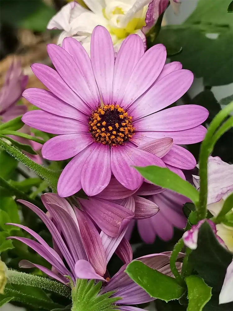 - African Daisy (Osteospermum) is an annual or biennial herb that prefers cool conditions, is not cold hardy, is intolerant of intense heat, and thrives in full sun. It requires well-drained soil and grows best in sandy loam rich in organic matter. Featuring a compact and dwarf plant form, it has a long flowering period of several months with excellent ornamental value. It is a new type of flowering ground cover for landscaping and an important material for flower beds and borders.