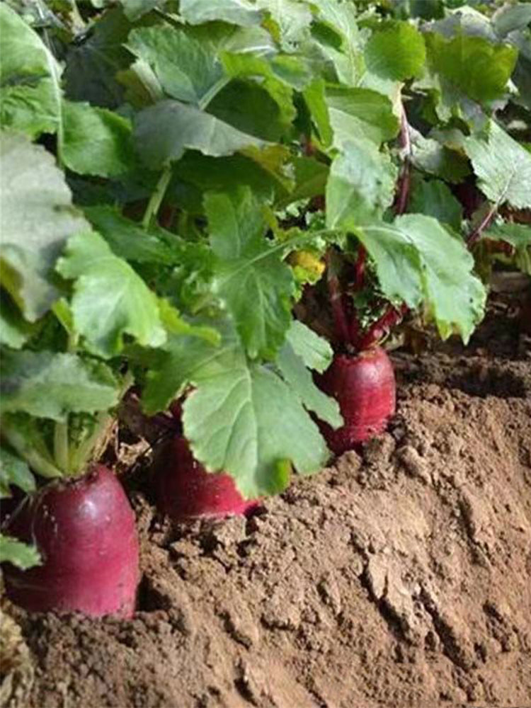 - Pineapple radish is a new hybrid fruit radish, pineapple-shaped, with a short and plump shape, purplish-red and smooth skin, and purple flesh. Individual roots weigh 700-800 grams. Harvest occurs 60-65 days after sowing. It has a crisp, juicy texture and a delicate, sweet flavor. It has a small core and thick flesh, and is resistant to cracking and pests. It is highly nutritious.