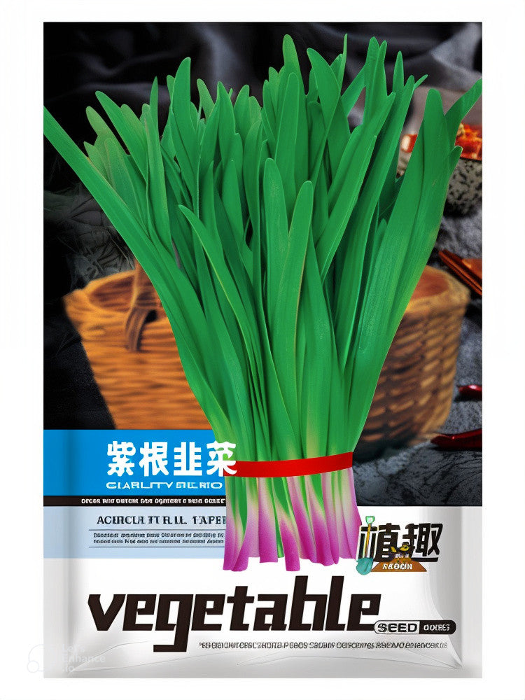 ZHIQU Purple-Rooted Chinese Chive Seeds, a high-yielding variety renowned for its robust growth and exceptional flavor. These chives boast upright, vigorous plants reaching an average height of 50 cm, adorned with broad, flavorful green leaves. The distinctive purple-tinted roots add a unique visual appeal.