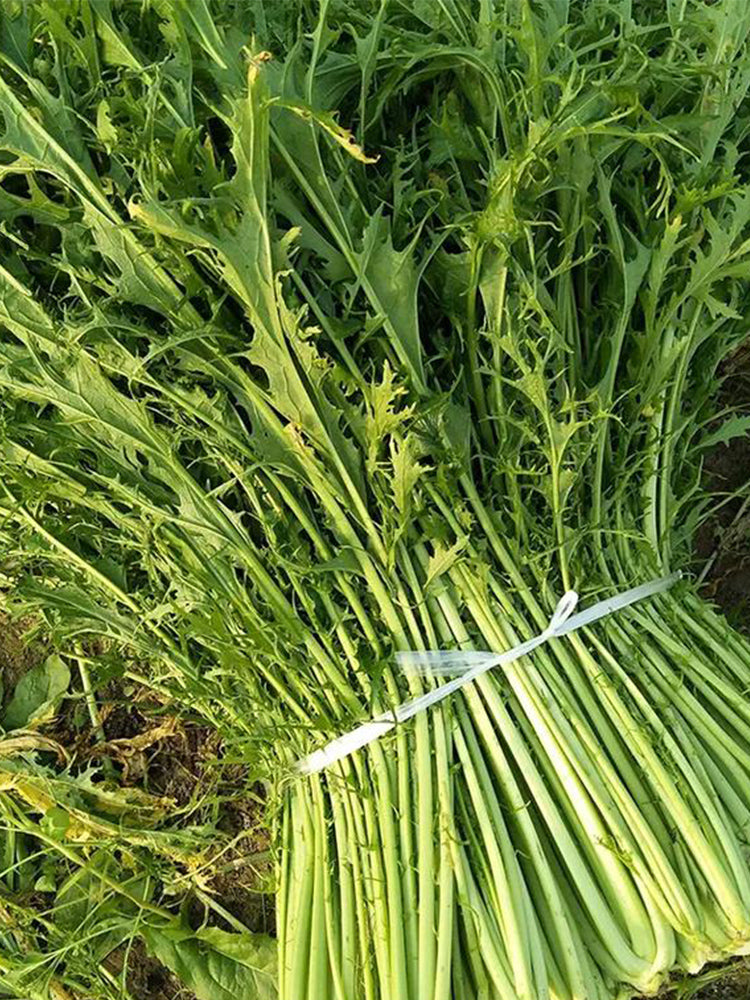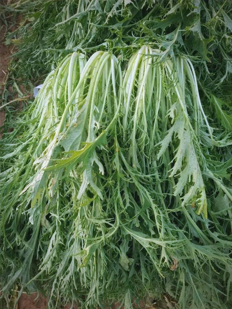 - This plant grows in a clumping form, reaching a height of 28-33 cm with a spread of approximately 50 cm. It exhibits vigorous branching. The leaves are lanceolate, measuring 30-36 cm in length and 7-9 cm in width. They are green with deeply serrated margins and nearly round petioles. The average weight per plant is 1-1.5 kg, and the yield can reach up to 3,000 kg per mu. This variety is highly adaptable and relatively cold-tolerant, but it is not tolerant to drought or waterlogging. It is a late-maturing variety that bolts late. Nutritious with a unique flavor and texture, it can be prepared in various ways: served cold in salads, stir-fried, dried, or commonly pickled.