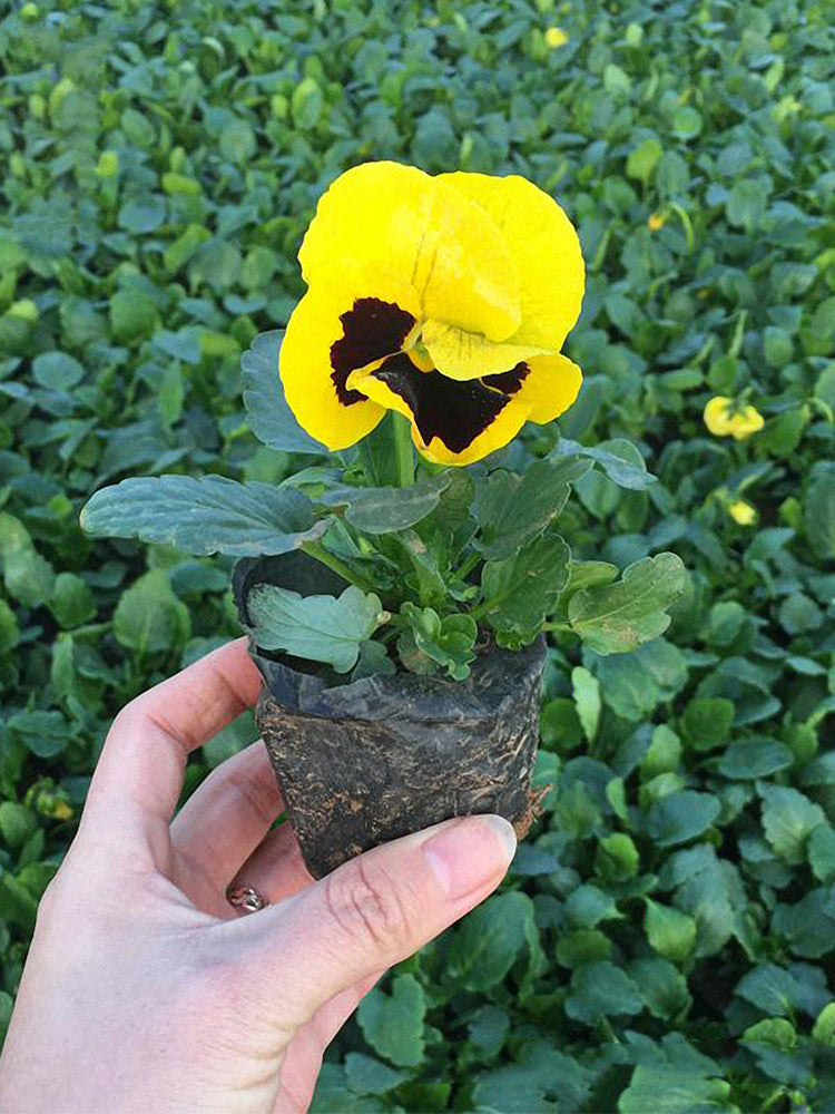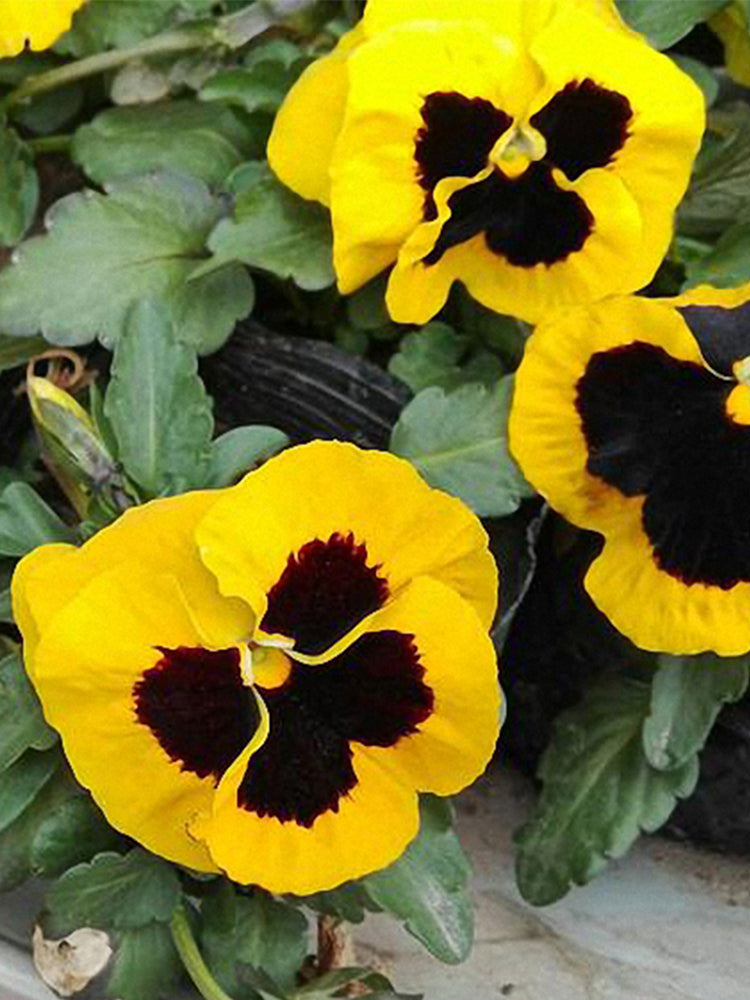 - Super Bingo Series Blotched Yellow Pansy (Viola × wittrockiana) is a biennial or perennial herbaceous plant in the Viola genus (Violaceae family), reaching a height of 10–40 cm. It features sturdy stems and ovate to oblong-lanceolate leaves with sparsely rounded or blunt-serrated margins, presenting an elegant overall form. The flowers exhibit vibrant yellow petals adorned with distinctive dark blotches at the center, creating a whimsical "ghost face" pattern. This pansy thrives in full sunlight; insufficient light may hinder flowering. Ideal growth temperatures range between 15–25°C during the day and 3–5°C at night. While highly cold-tolerant, its leaf edges may yellow if temperatures drop below -5°C. It adapts well to most soil types but prefers loose, fertile, well-drained neutral or clay loam. Thanks to its striking colors and unique floral morphology, it is perfect for large-scale planting in flower beds and borders to create dazzling displays, or as potted specimens to brighten indoor and outdoor spaces like windowsills and balconies. An exceptional choice for both urban landscaping and home ornamentation.