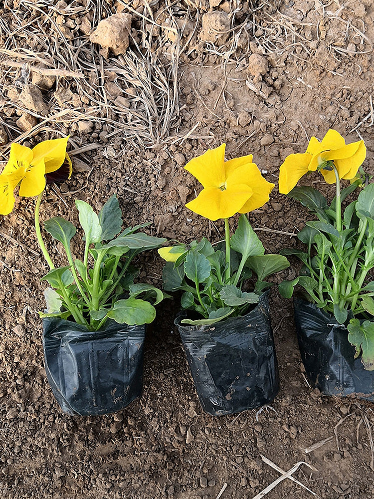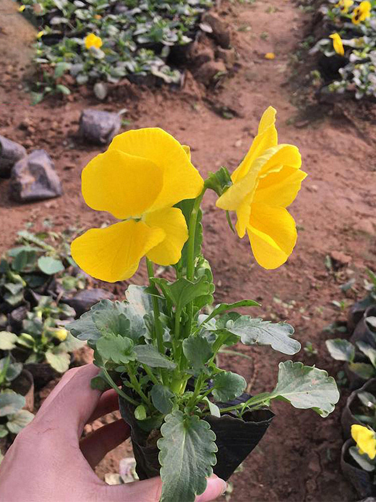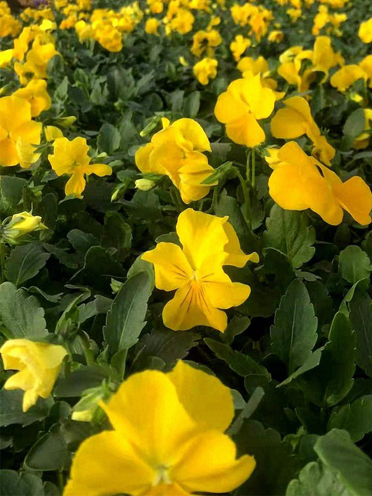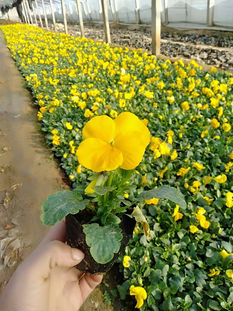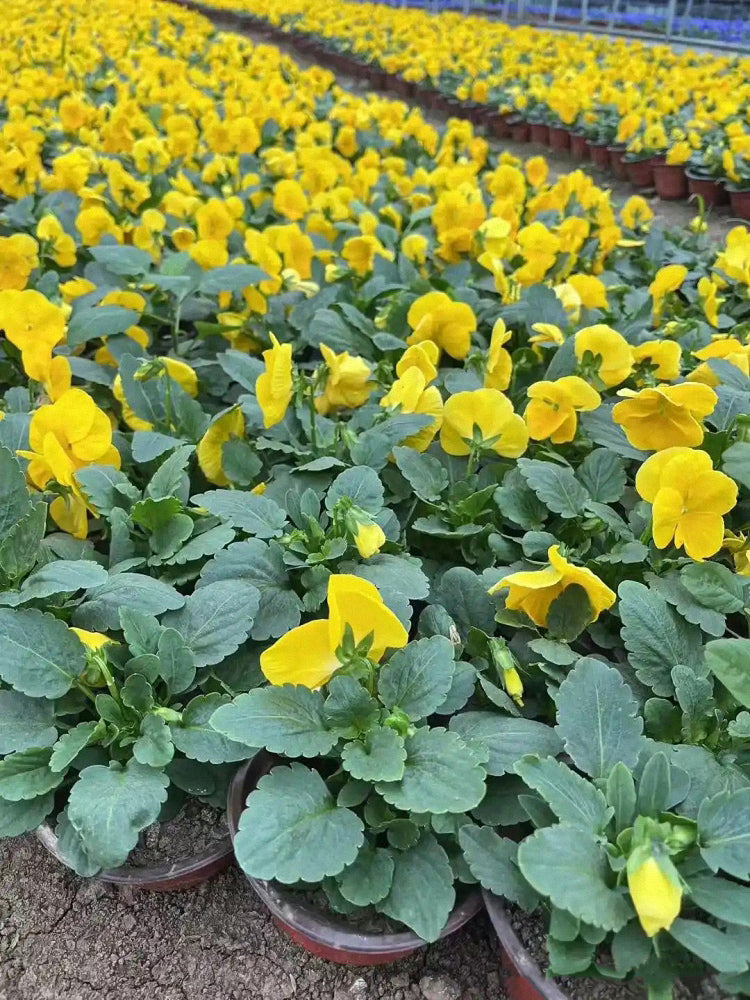 - Super Bingo Series Yellow Pansy (Viola × wittrockiana) is a biennial or perennial herbaceous plant in the Violaceae family. Its aerial stems are relatively thick, with leaves that are long-ovate to lanceolate. Upper leaves have longer petioles than lower leaves. The petals are yellow, large and nearly round. Pansy flowering is influenced by temperature, performing best in environments with daytime temperatures of 18–25℃ and nighttime temperatures around 5℃; growth stops when temperatures exceed 32℃. Its root system can withstand temperatures as low as -15℃, but below -5℃, leaf margins may turn yellow due to frost damage. The flowering period is from April to July, and fruiting period from May to August.