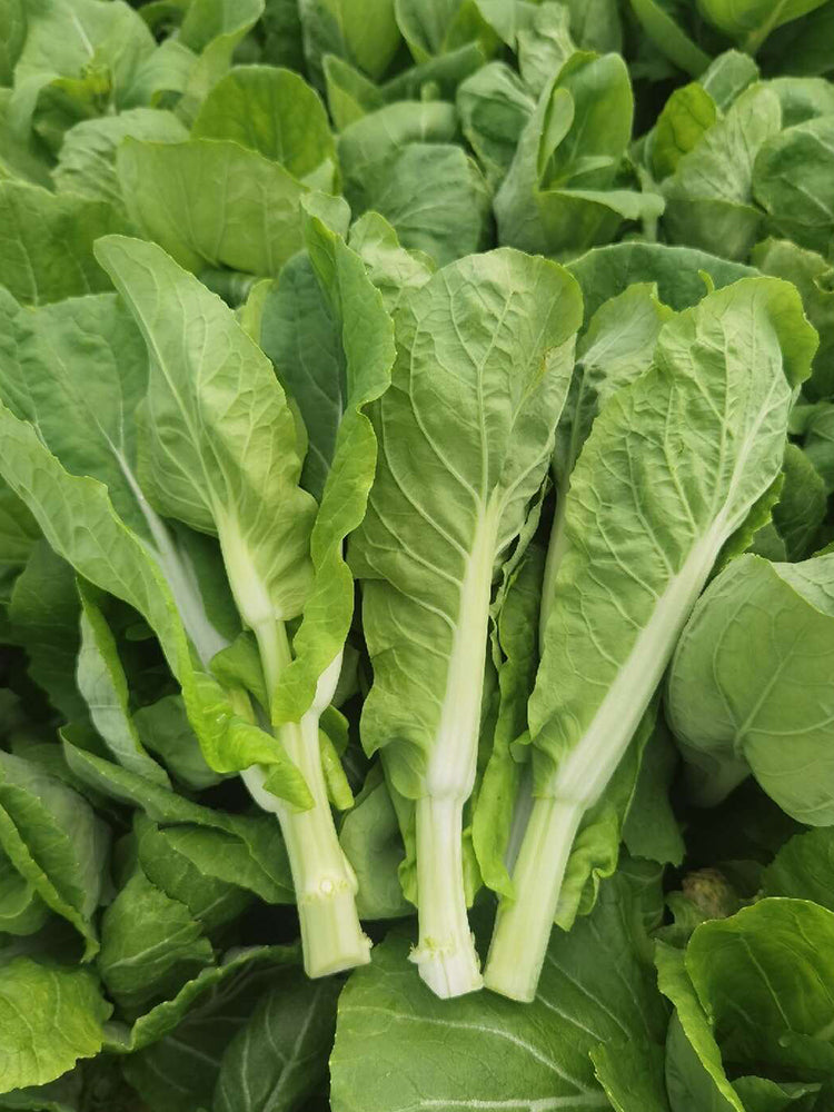 - This early-maturing, first-generation hybrid produces edible shoots of choi sum. It reaches the first harvest stage 65-70 days after sowing. The shoots are tender and pale white in color, with low fiber content and a mildly sweet flavor. The main shoot is thick and sturdy, weighing about 120 grams, and is resistant to hollow stem. The plant is responsive to fertilizer and irrigation, with a strong capacity for continuous harvest over a period of up to four months. Under such successive harvesting, the yield can reach approximately 3,000 kg per mu. Well-adapted to various conditions, it is suitable for open-field cultivation in autumn as well as for protected cultivation during winter.